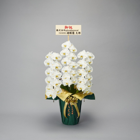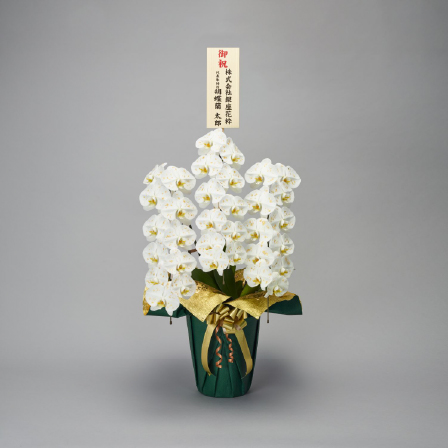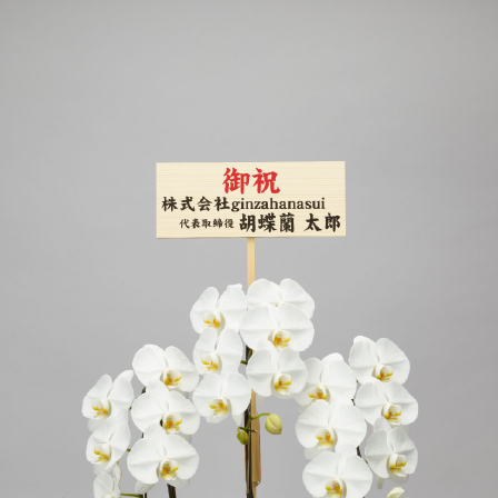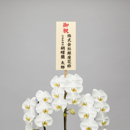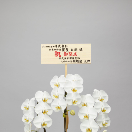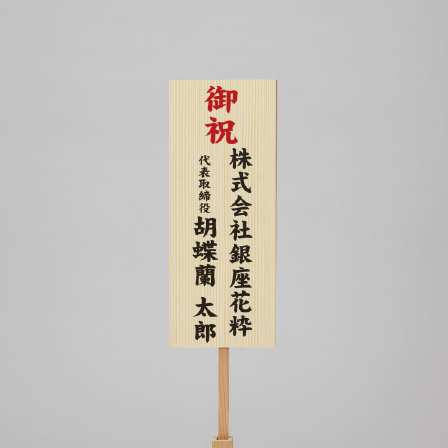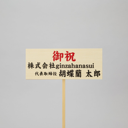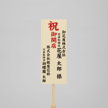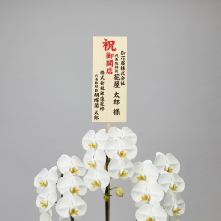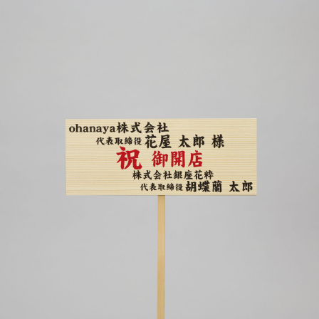 開店祝いに贈る花には、贈り主を示す立札(たてふだ)が添えられます。