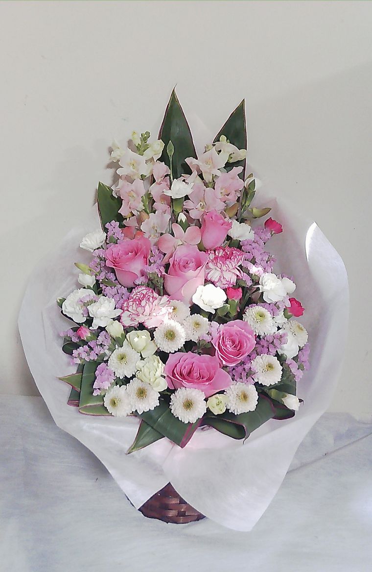 上寿・百寿(100歳)のお祝い桃色のお花メインのアレンジメント10000
