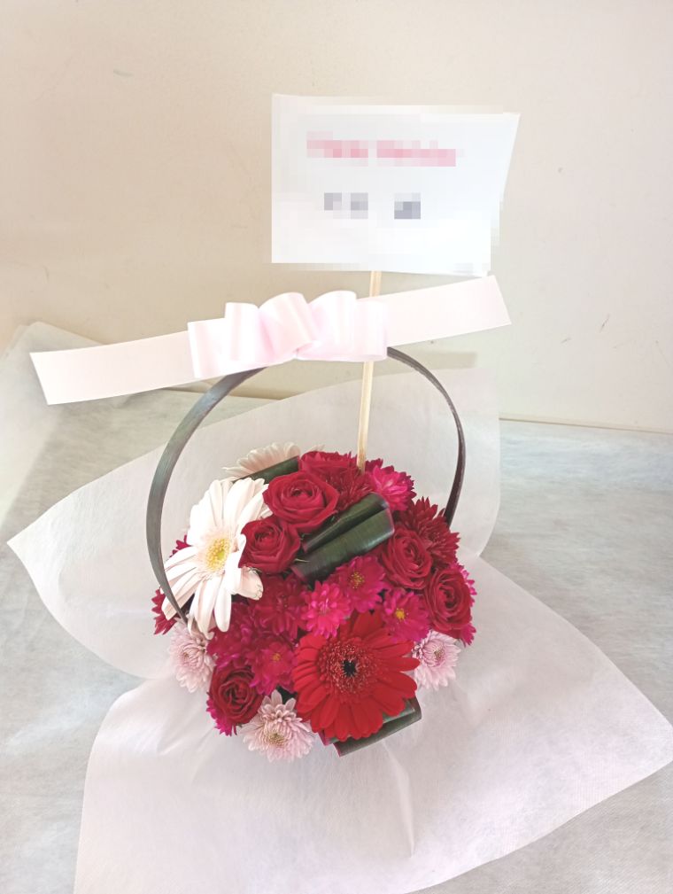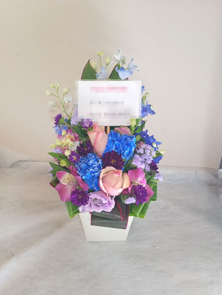 この写真は、実際にお届けさせていただいたアレンジメントです