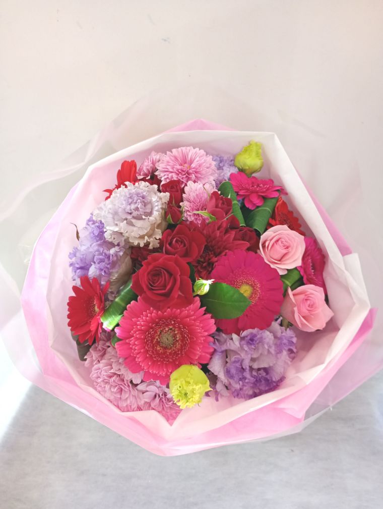 ピンク・レッド・クリームイエロー系のブーケ(花束)