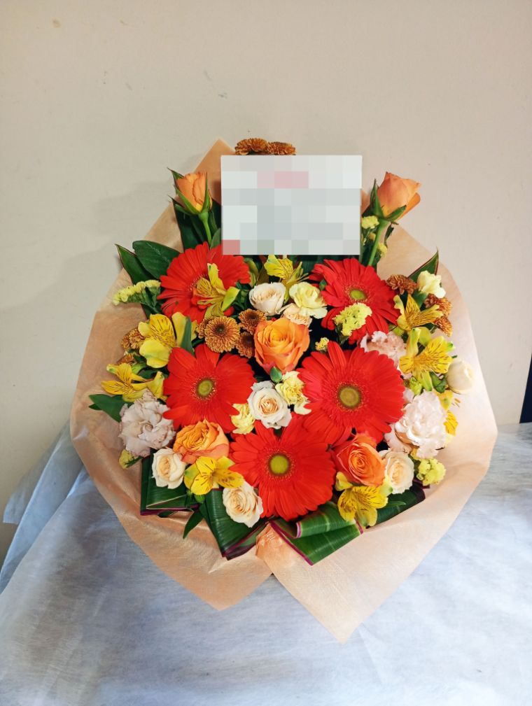 この写真は、実際にお届けさせていただいたアレンジメントです