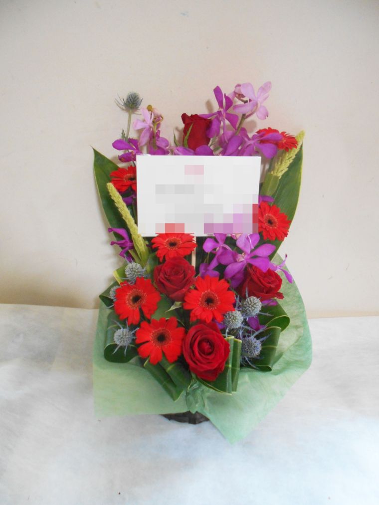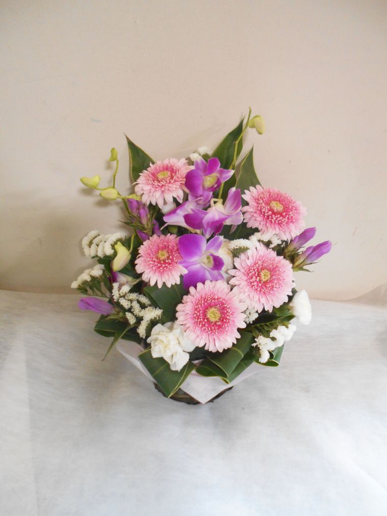 アレンジメントの実際にお届けした写真です。花秘書では発送前に写真をメールで送信致しますので安心して大切な顧客や取引様へのギフトにご利用頂けます。