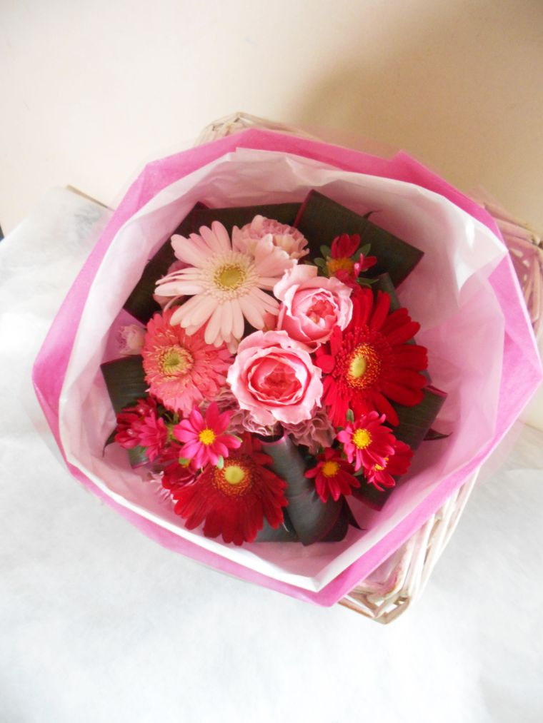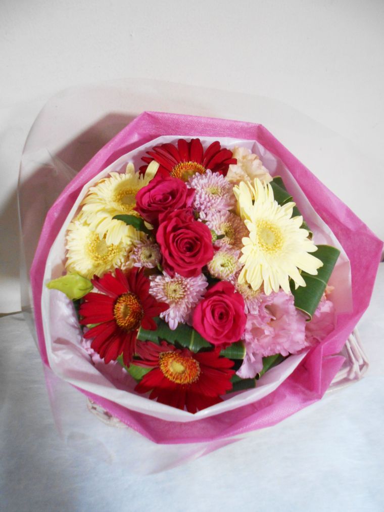 ピンク・レッド・クリームイエロー系のブーケ(花束)