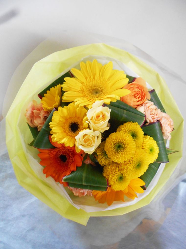 鮮やかな黄色オレンジ系のブーケ(花束)