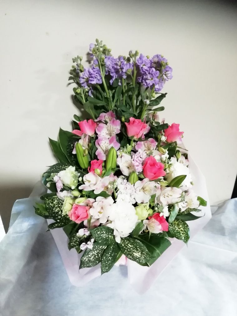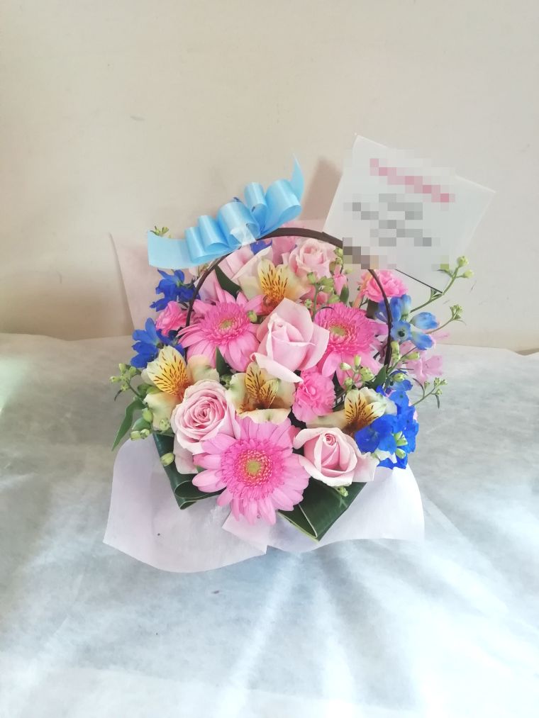 この写真は、実際にお届けさせていただいたアレンジメントです