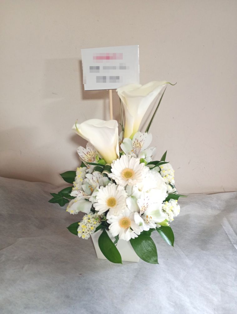 白寿(99歳)のお祝い白色のお花メインのアレンジメント5000
