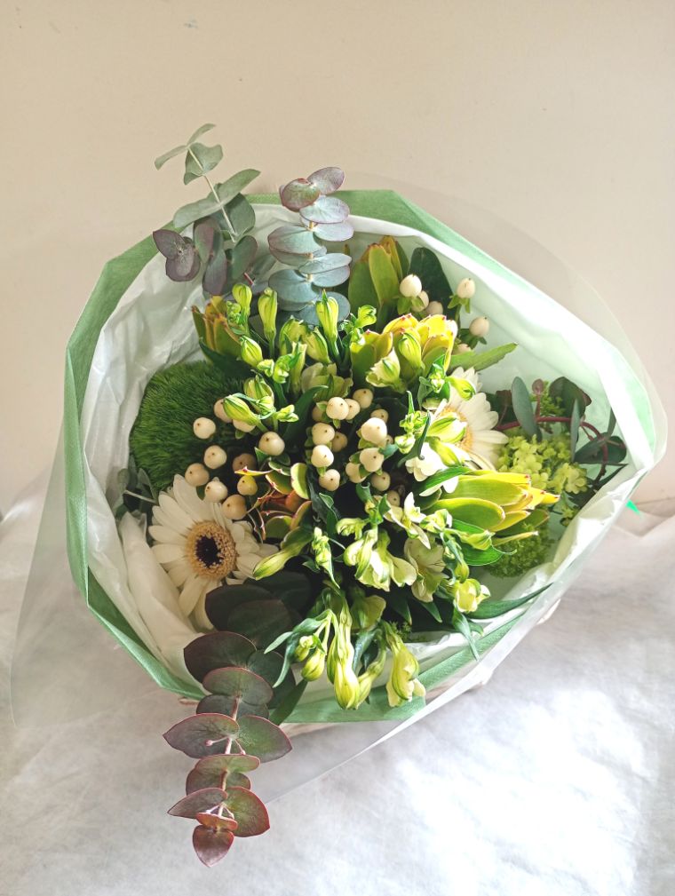 緑寿(66歳)のお祝い緑色のお花メインのアレンジメント5000