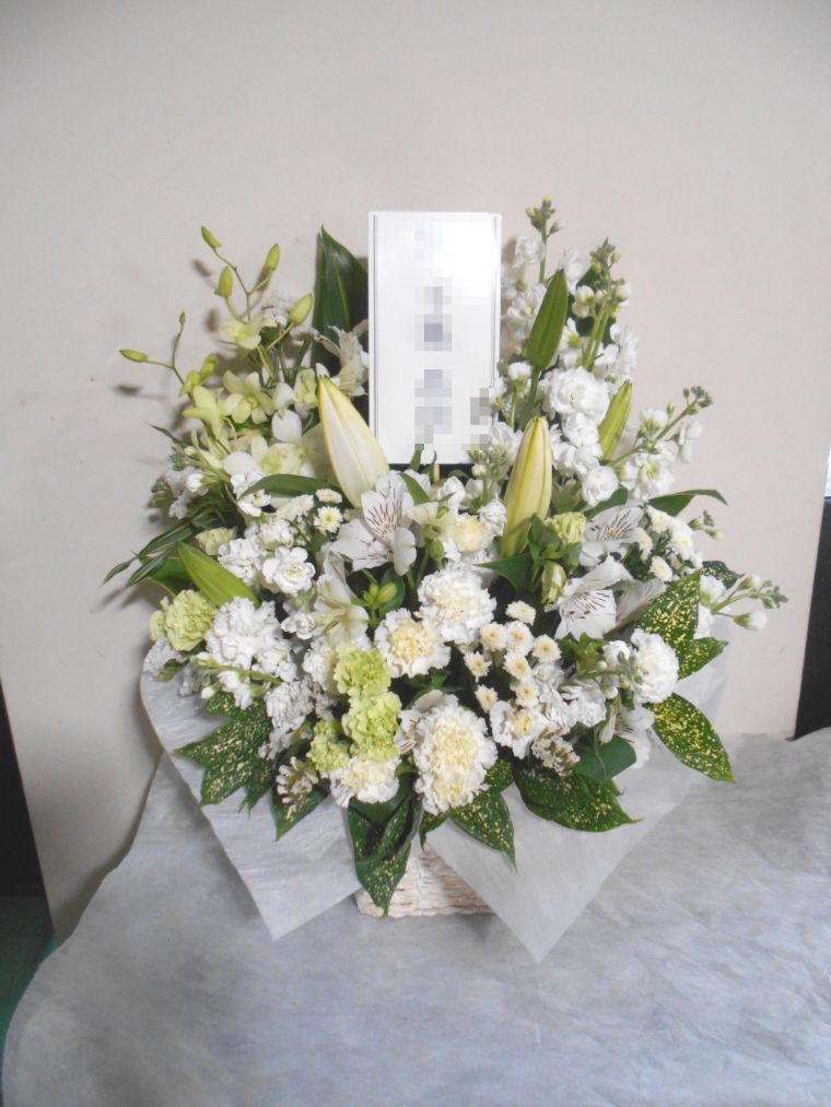 お悔やみ お供えの花 供花 (白基調でユリのお花をメインにしたバスケットアレンジ)