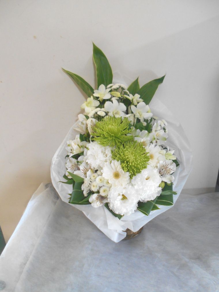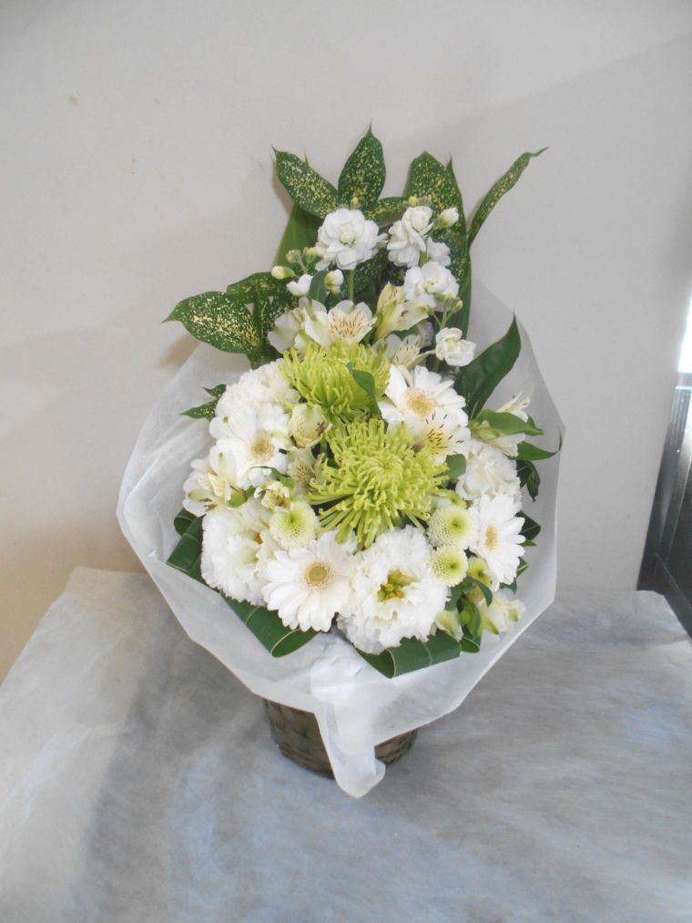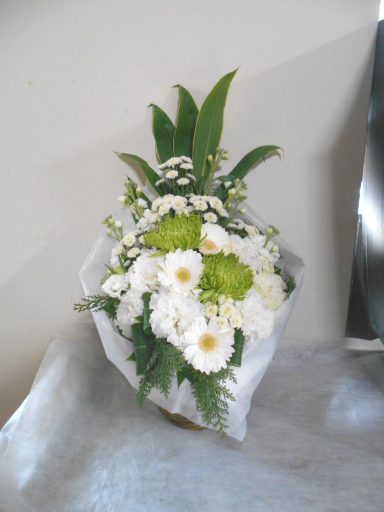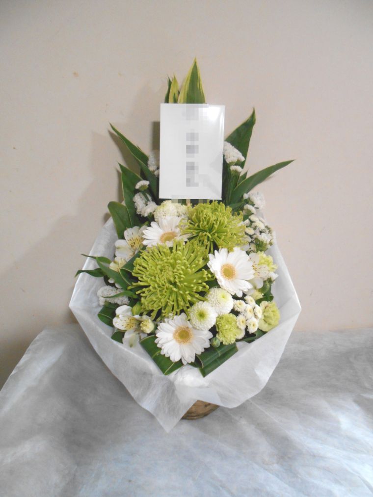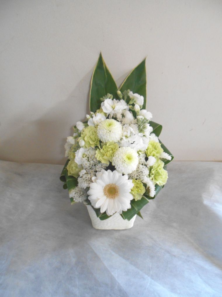 お悔やみ お供えの花 供花 (ホワイト&グリーンでまとめたバスケットアレンジ)