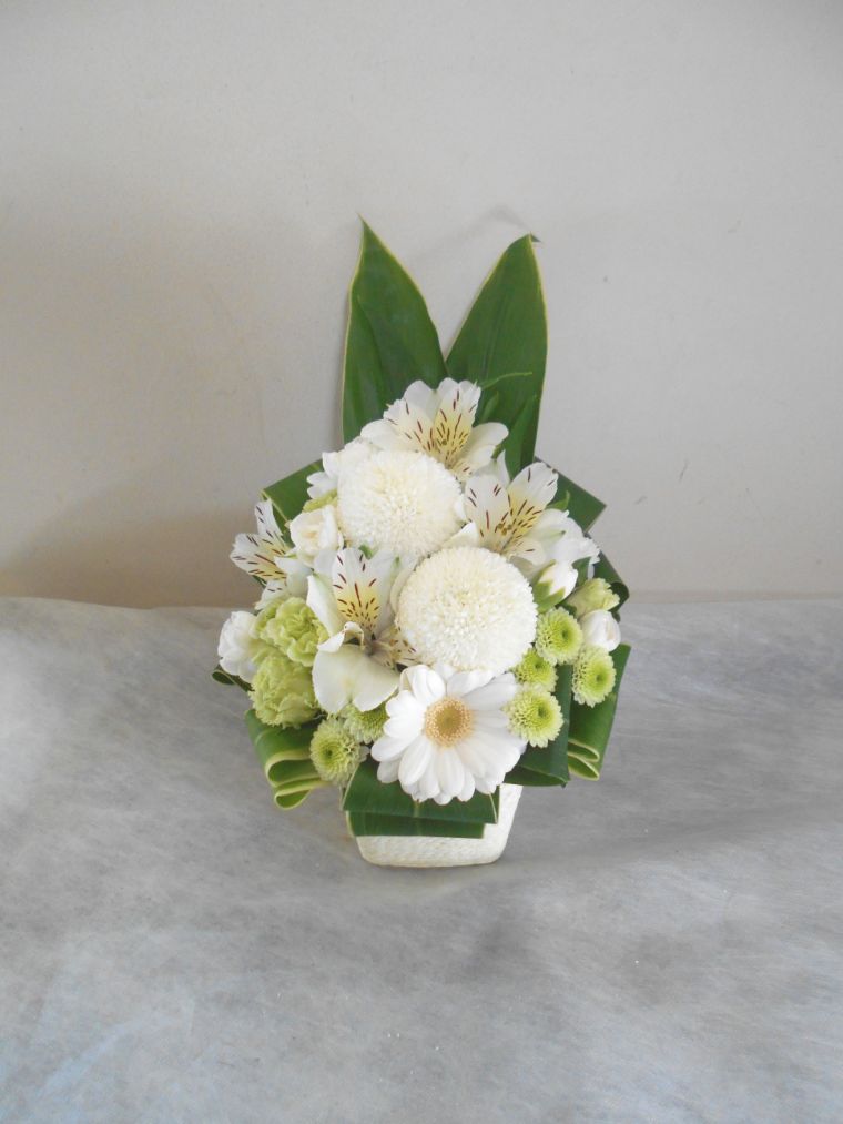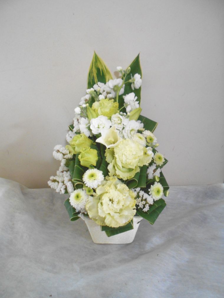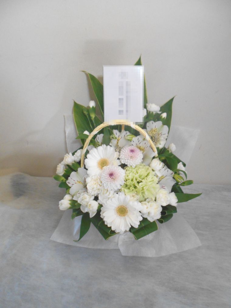 お悔やみ お供えの花 供花 (ホワイト&グリーンでまとめたバスケットアレンジ)