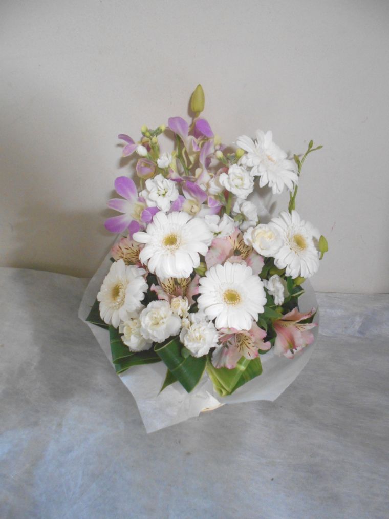この写真は、実際にお届けさせていただいたアレンジメントです