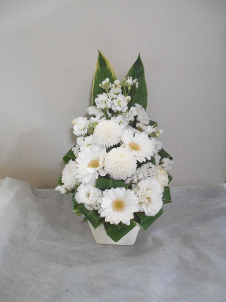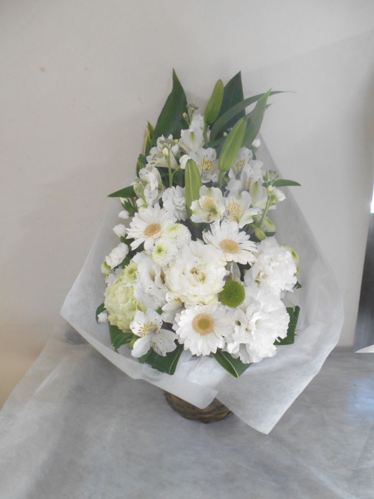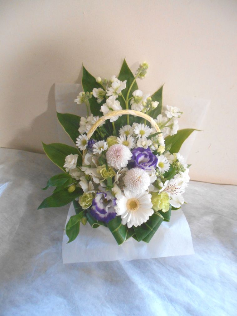 お悔やみ お供えの花 供花 (純白でまとめたバスケットアレンジ)