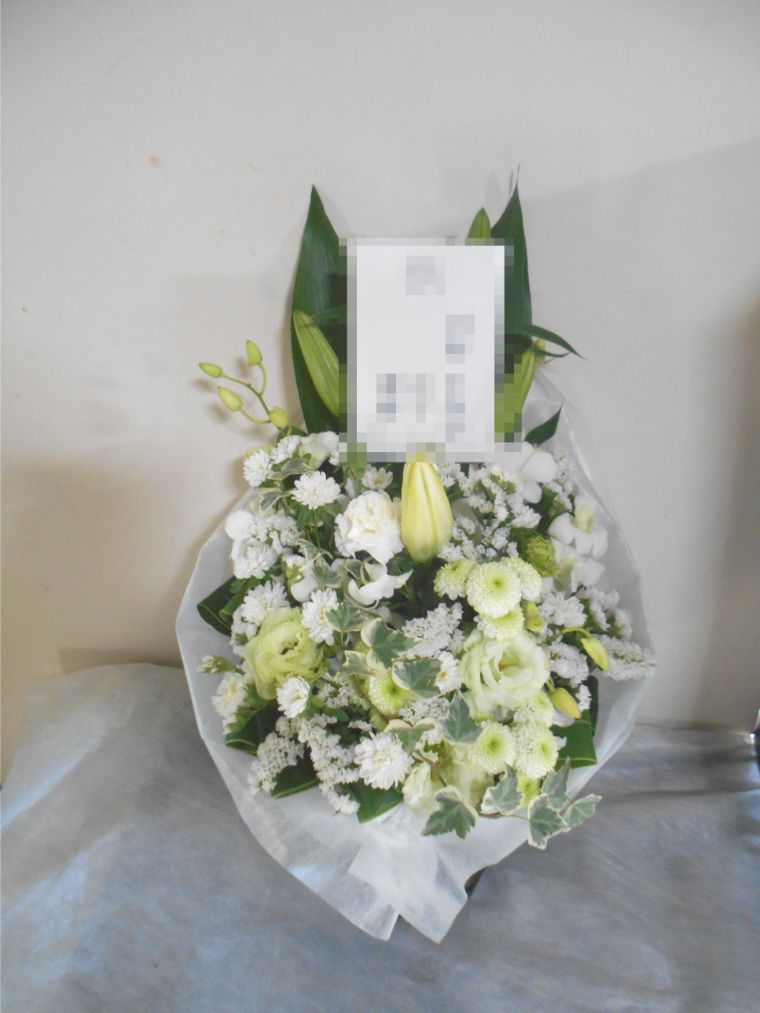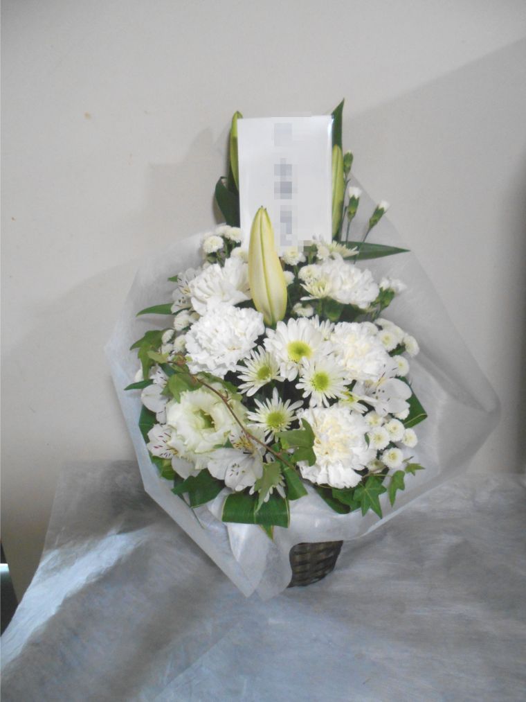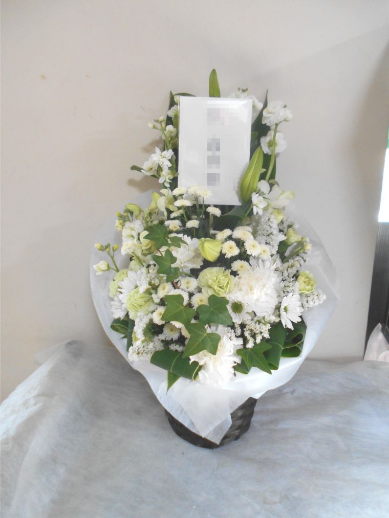 お悔やみ お供えの花 供花 (ホワイト&グリーンを基調にしたバスケットアレンジ)