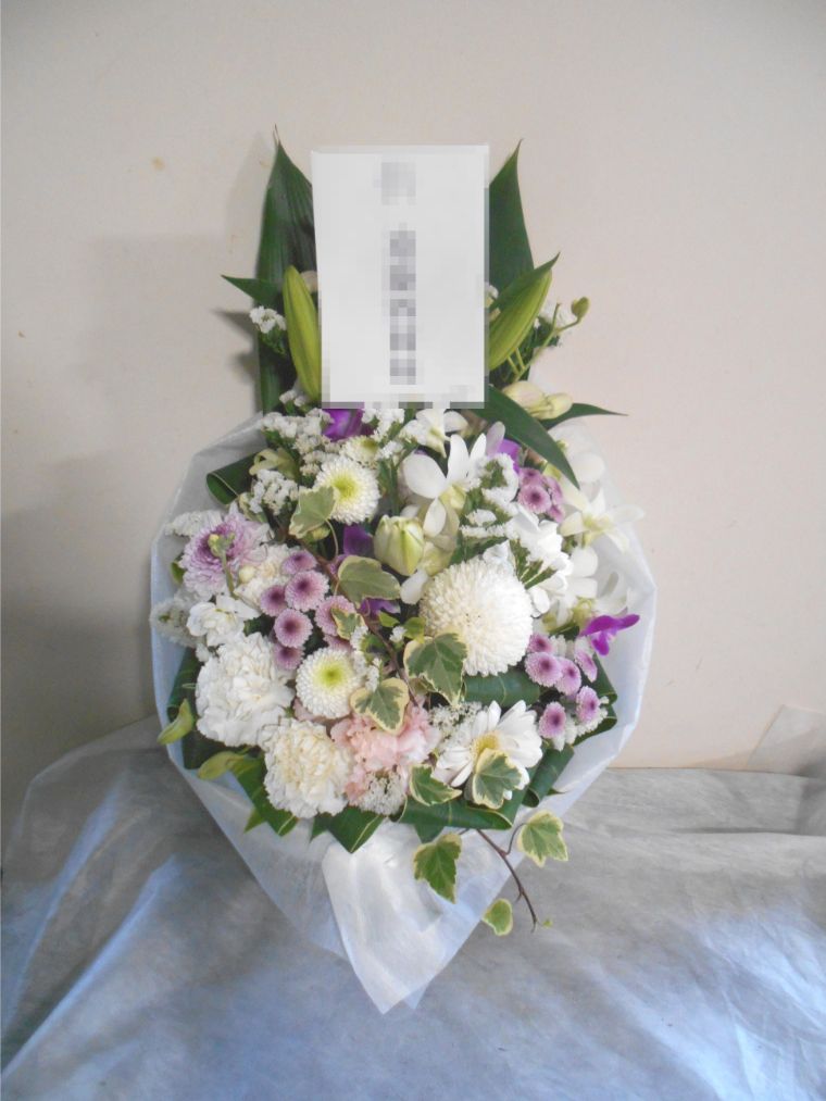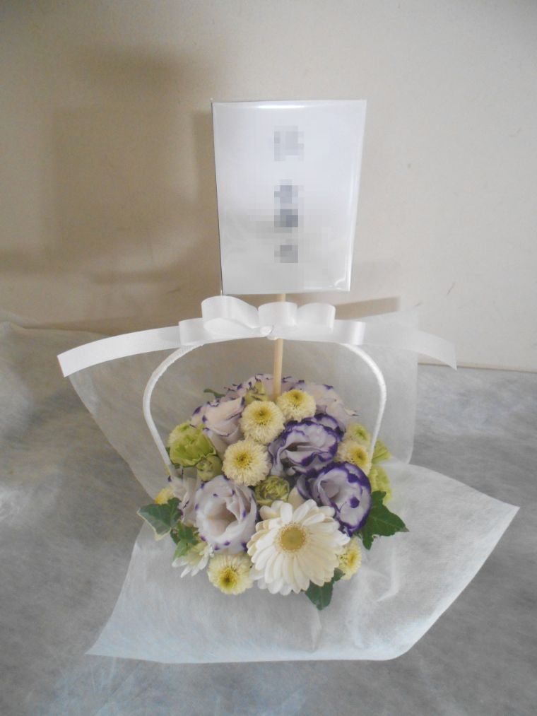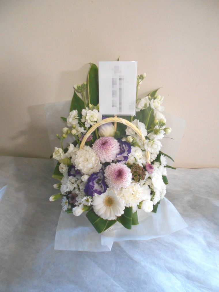 お悔やみ お供えの花 供花 (ホワイト&薄紫系でまとめた手付きのバスケットアレンジ)