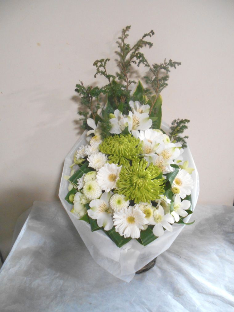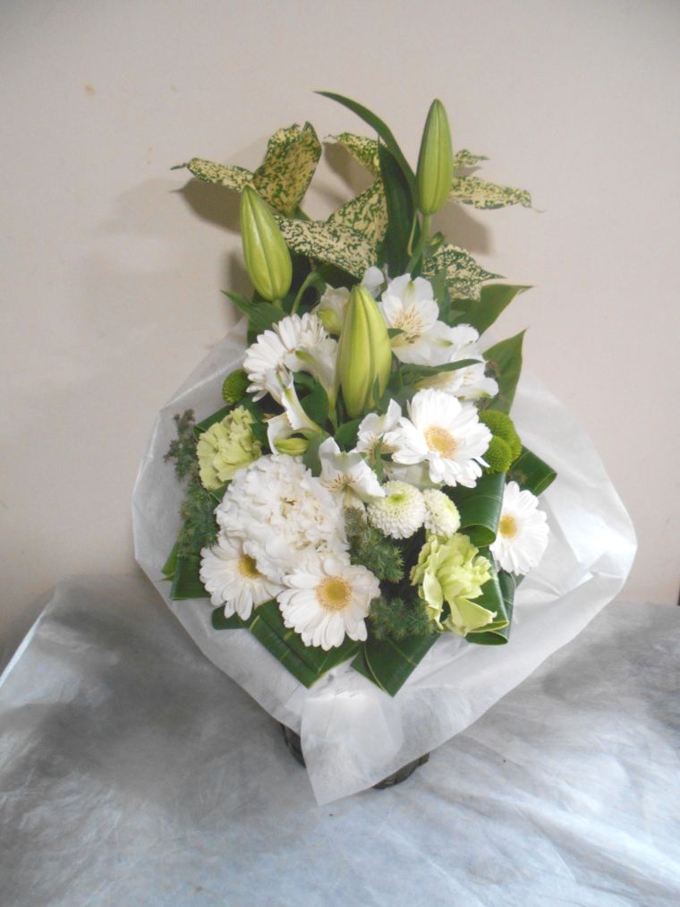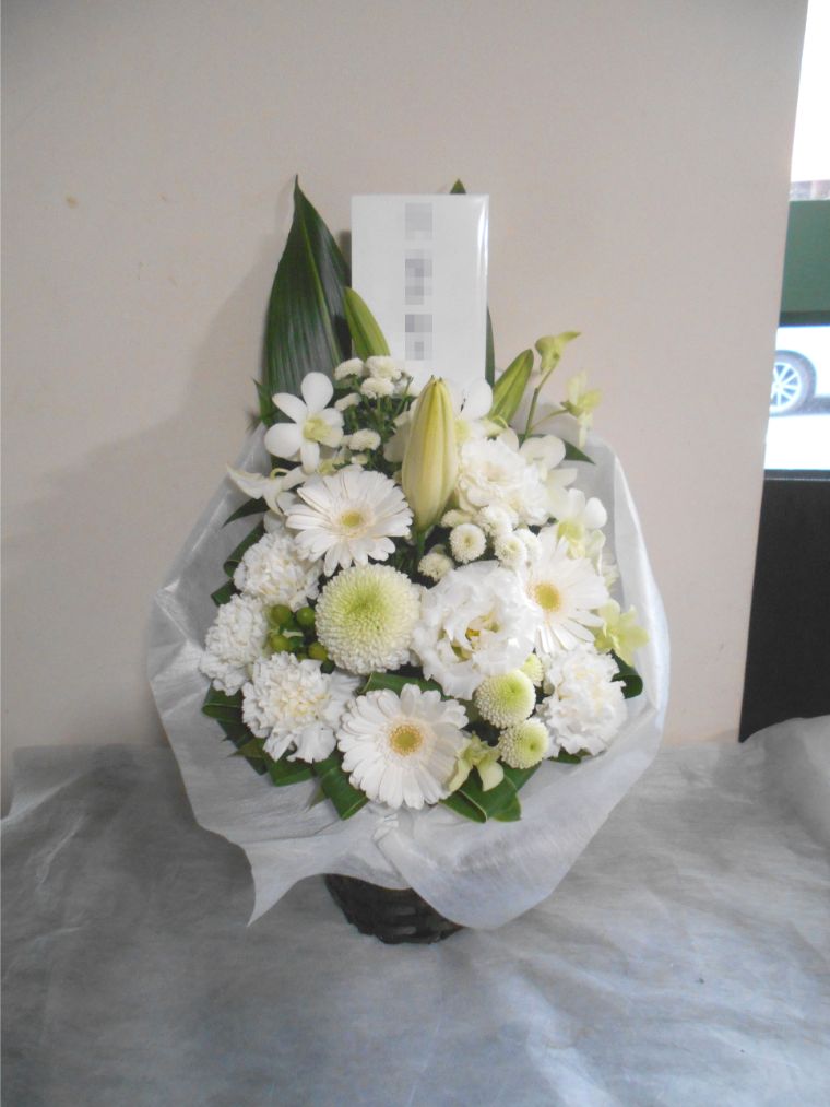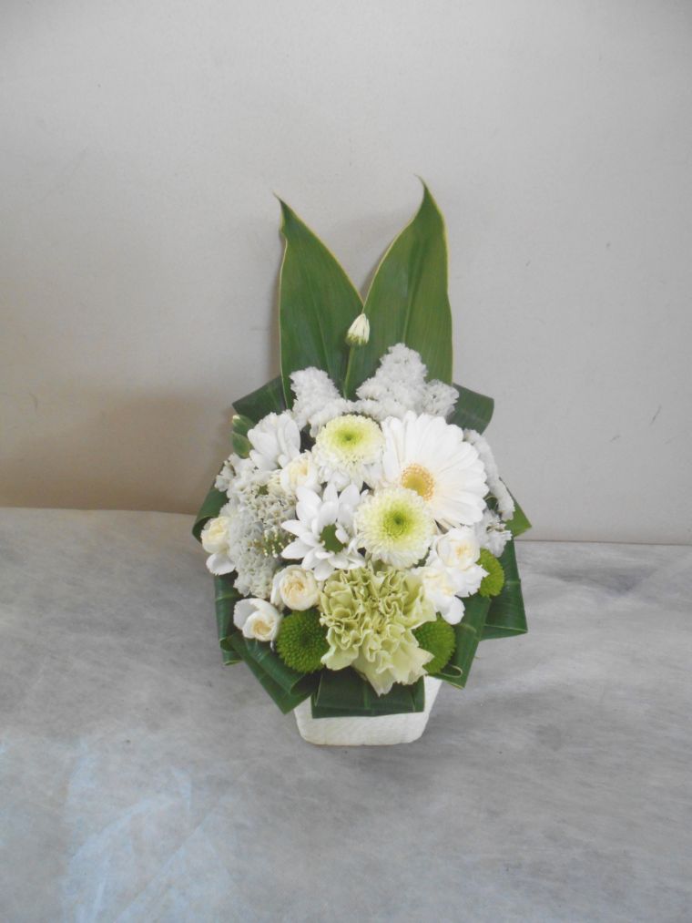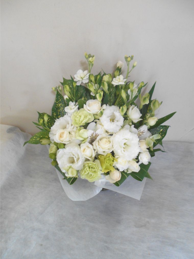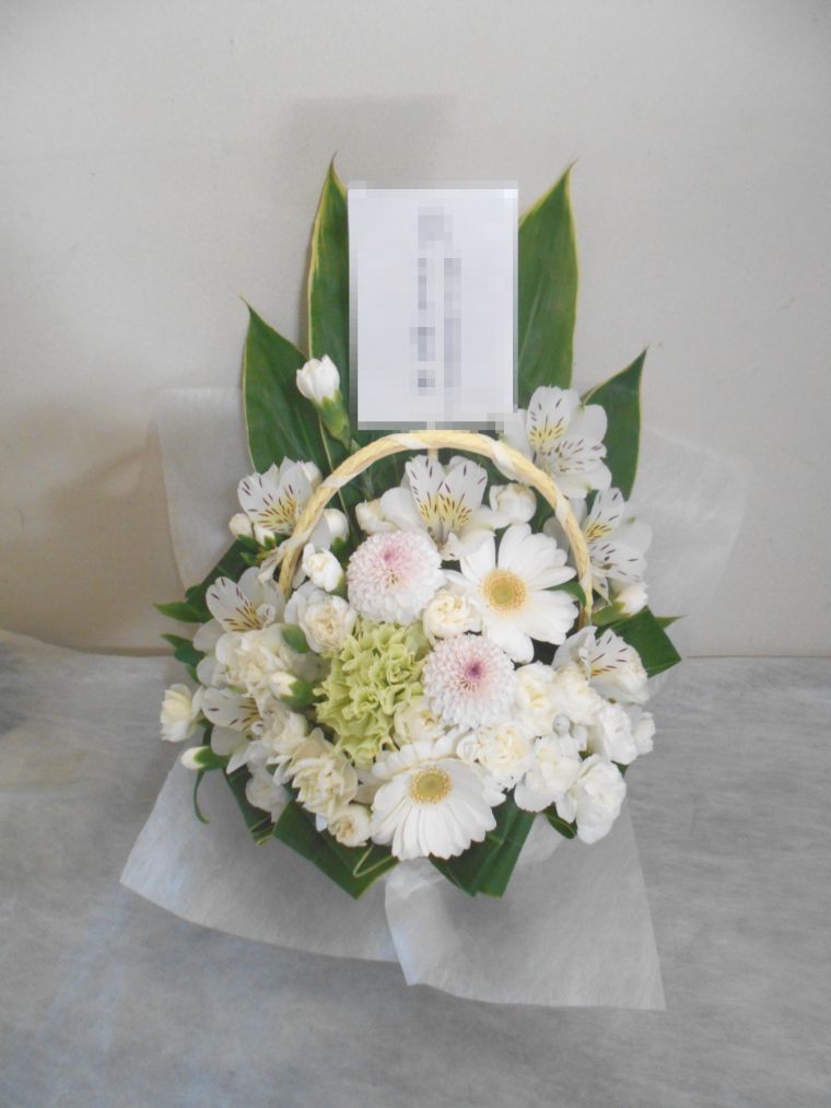 お悔やみ お供えの花 供花 (ホワイト&グリーンでまとめたバスケットアレンジ)