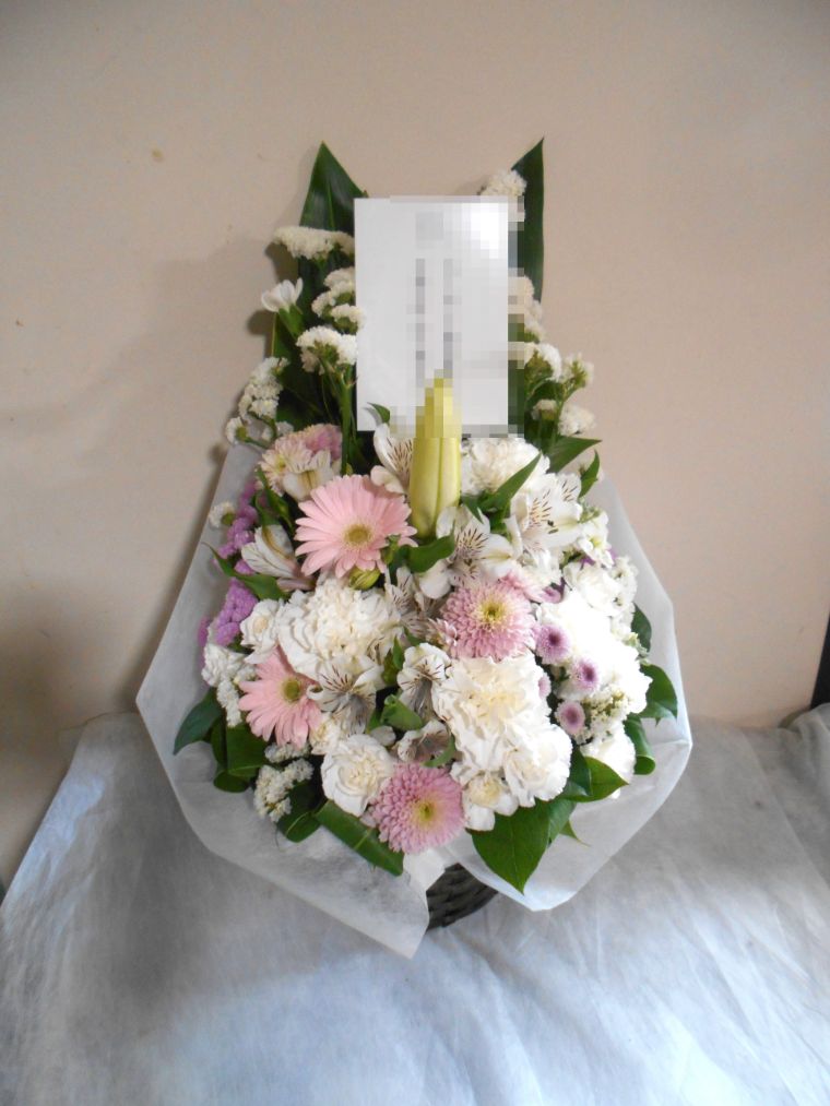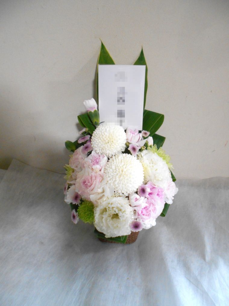 お悔やみ お供えの花 供花 (ホワイト&ピンクでまとめたバスケットアレンジ)