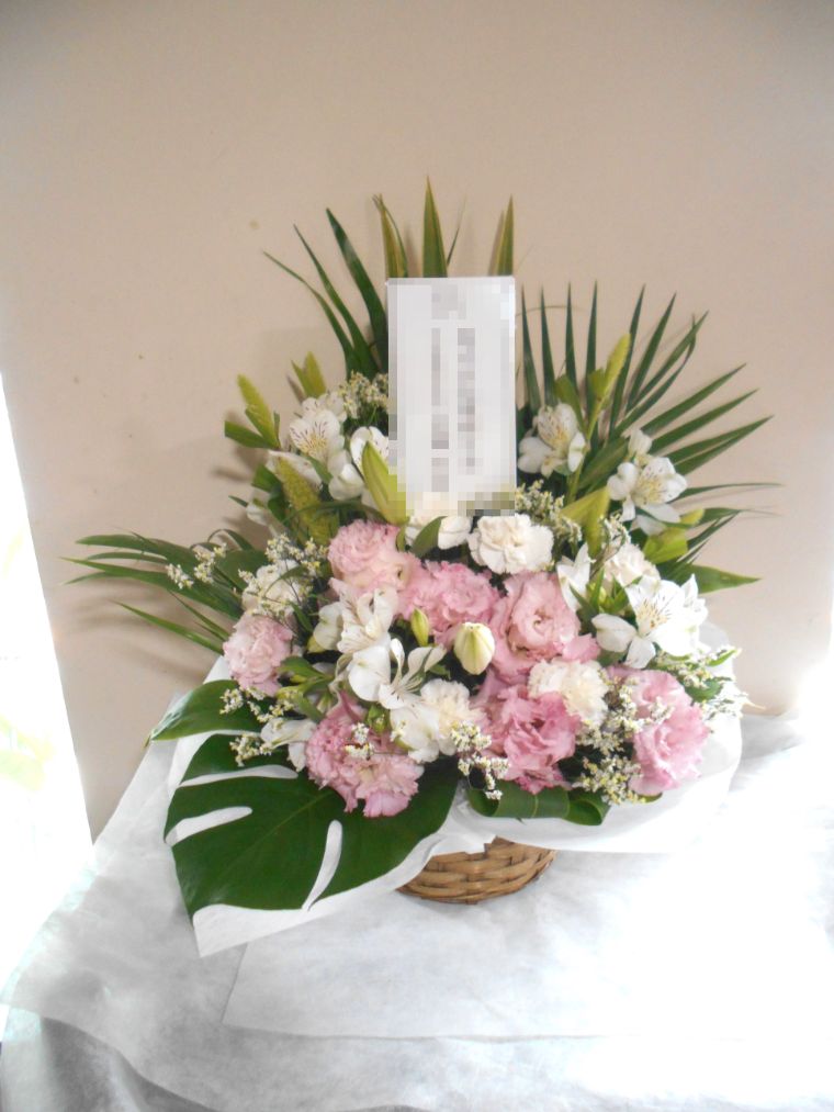 お悔やみ お供えの花 供花 (ホワイト&ピンクでまとめたバスケットアレンジ)