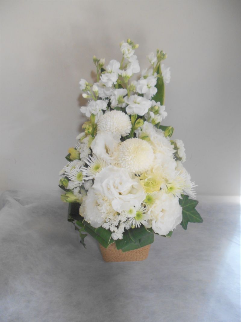 お悔やみ お供えの花 供花 (純白でまとめたバスケットアレンジ)