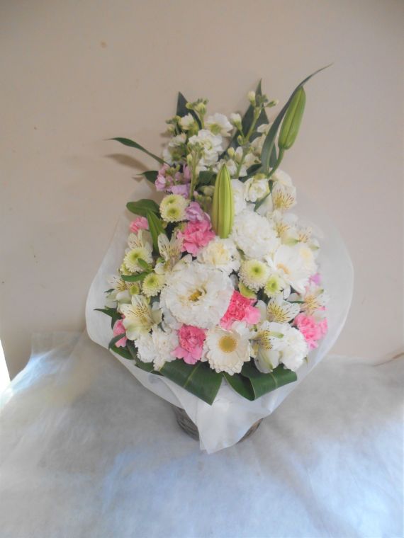 この写真は、実際にお届けさせていただいたアレンジメントです