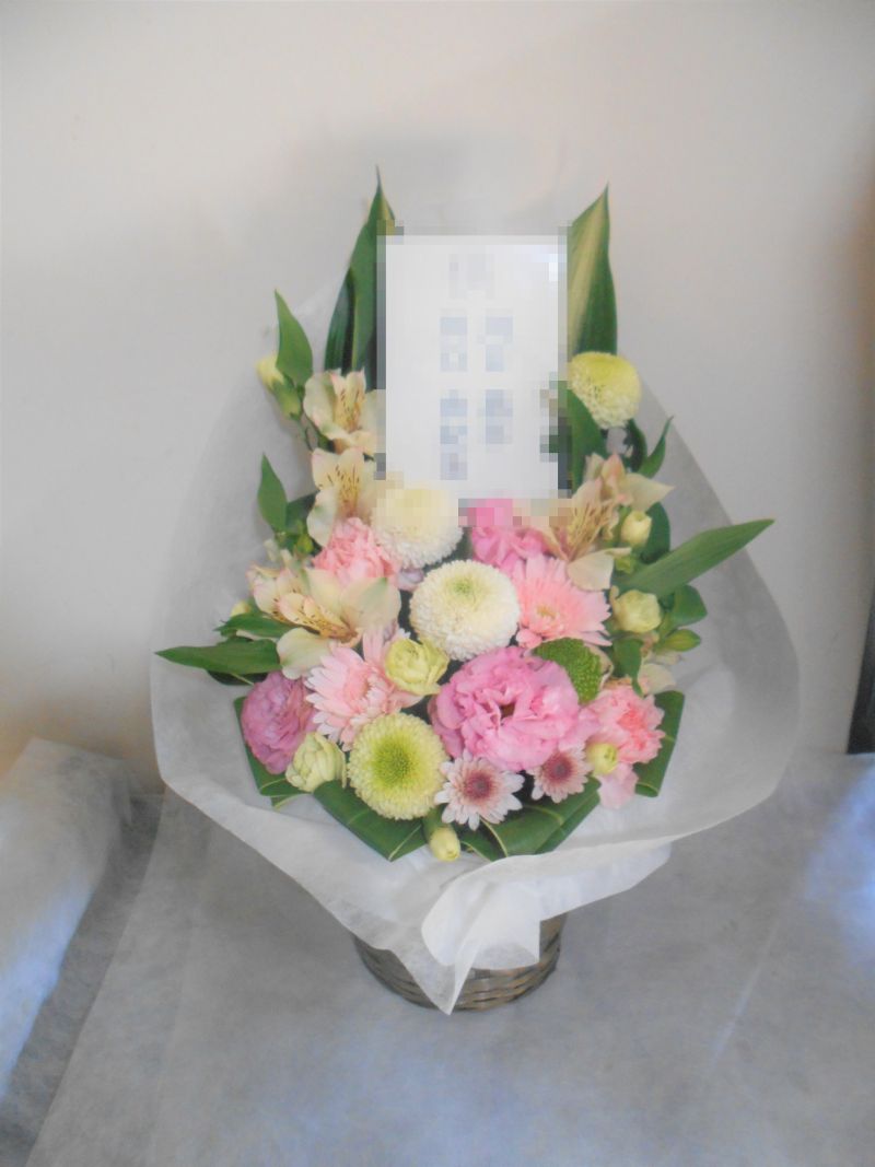 お悔やみ お供えの花 供花 (淡いピンク系のお花でまとめたバスケットアレンジ)