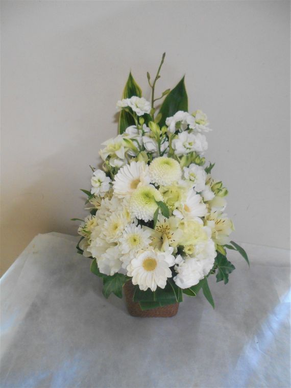 お悔やみ お供えの花 供花 (純白でまとめたバスケットアレンジ)