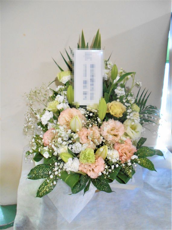 お悔やみ お供えの花 供花 (ホワイト&ピンクでまとめたバスケットアレンジ)
