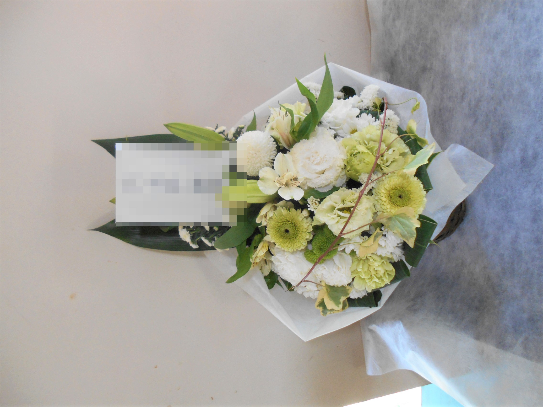 お悔やみ お供えの花 供花 (ホワイト&グリーンを基調にした手付きバスケットアレンジ)