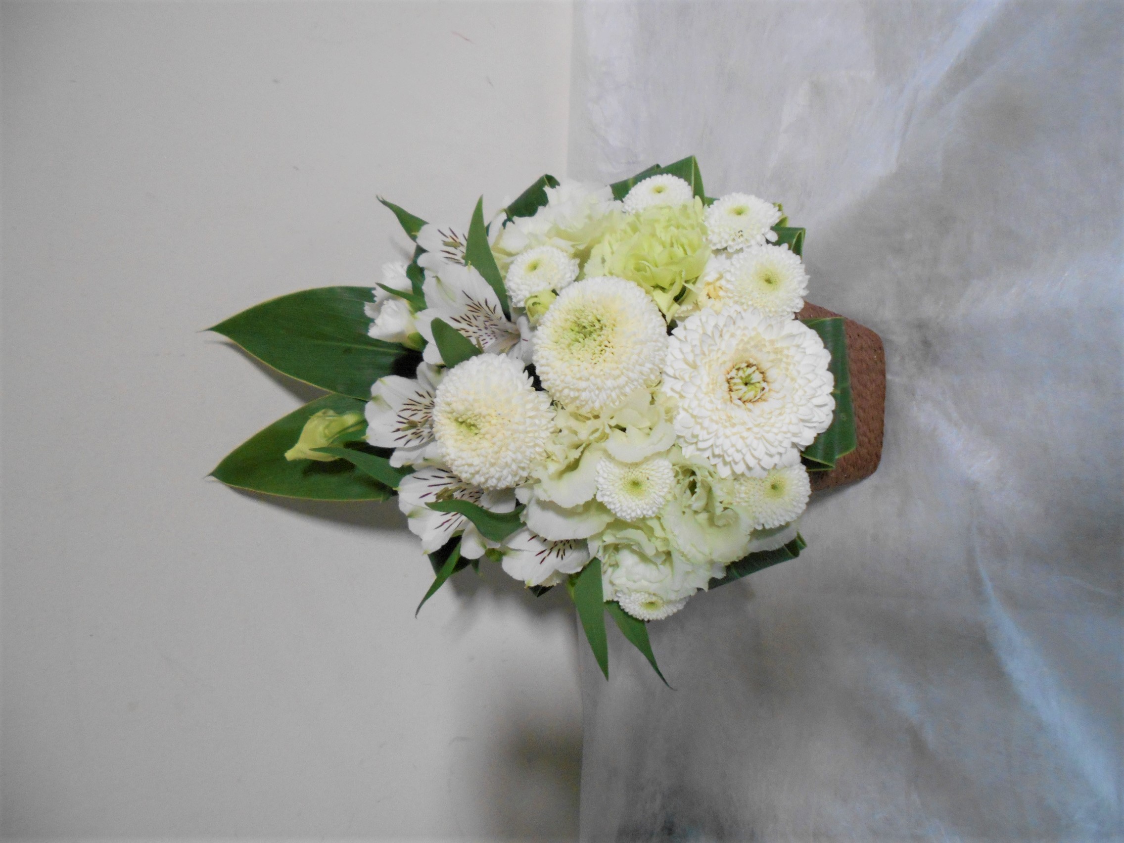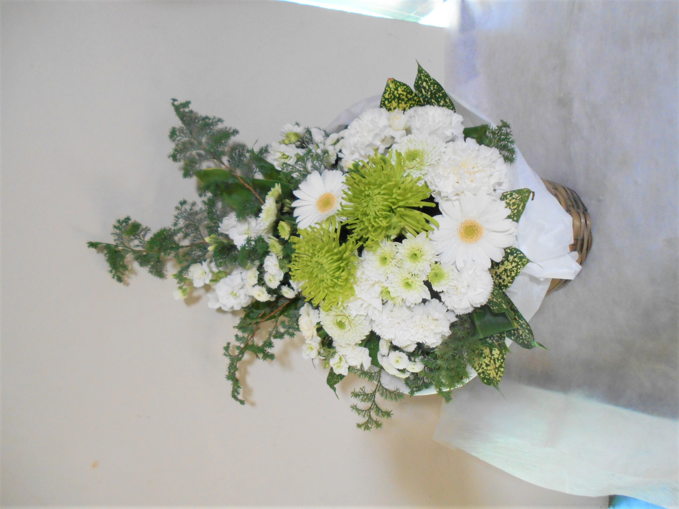 お悔やみ お供えの花 供花 (ホワイト&グリーンでまとめたバスケットアレンジ)