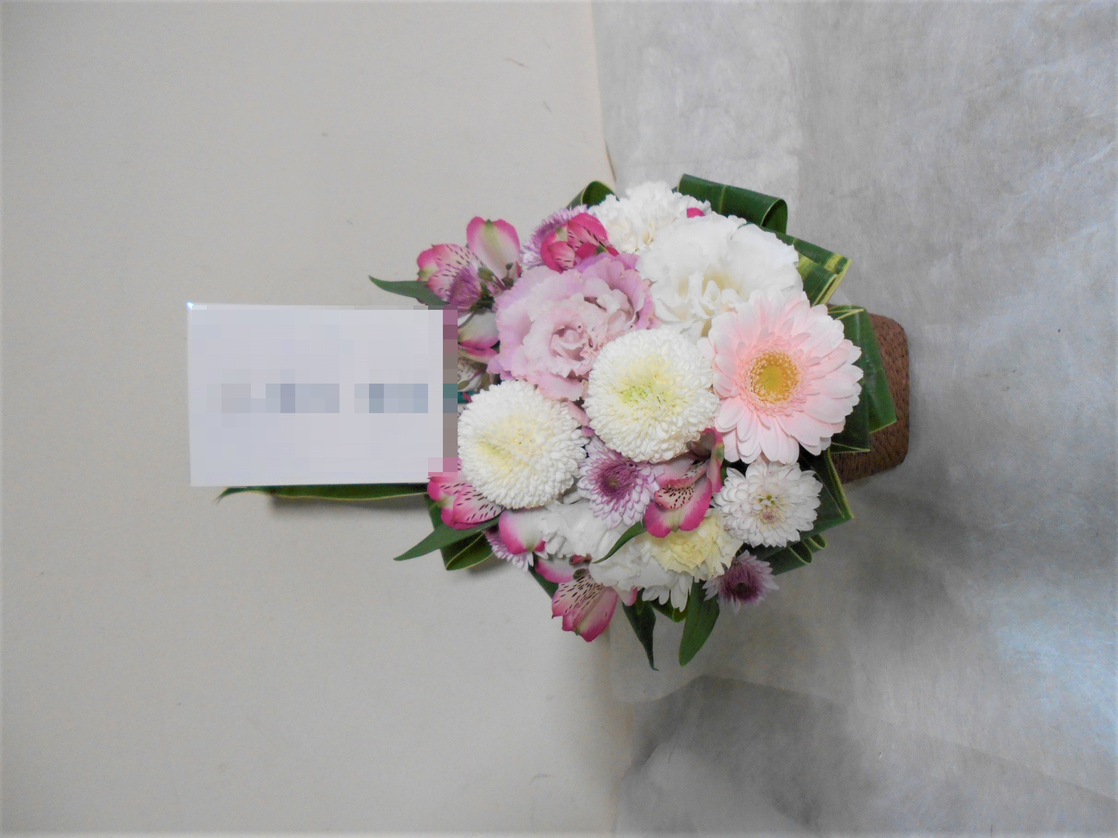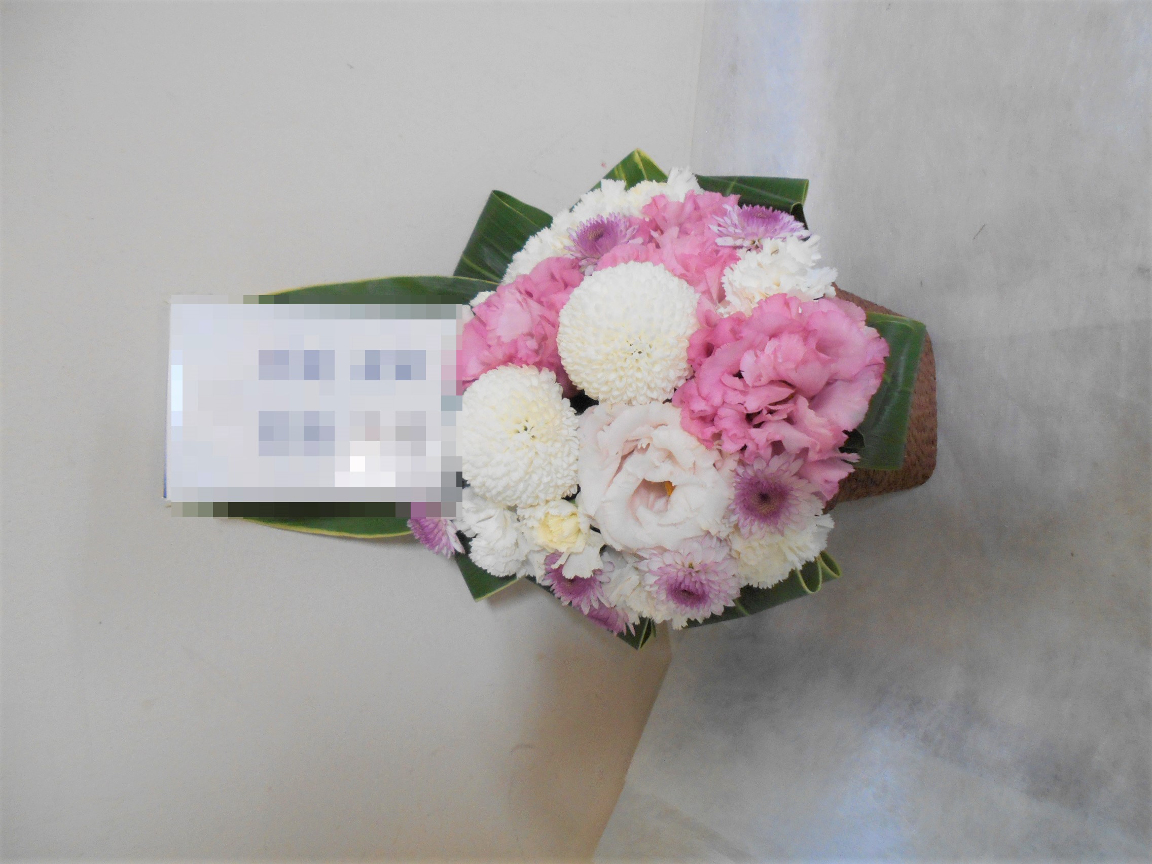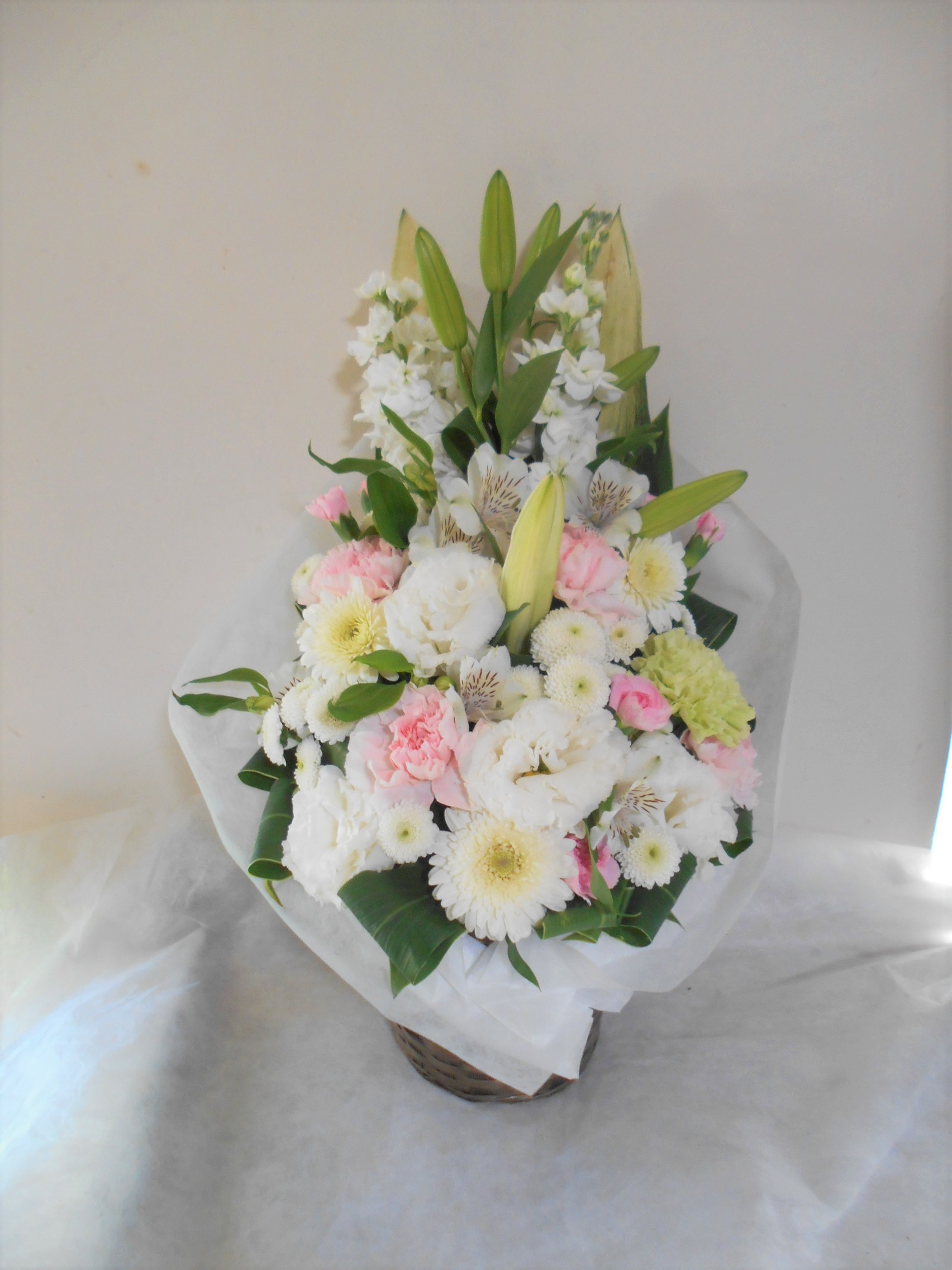 お悔やみ お供えの花 供花 (ホワイト&ピンクでまとめたバスケットアレンジ)