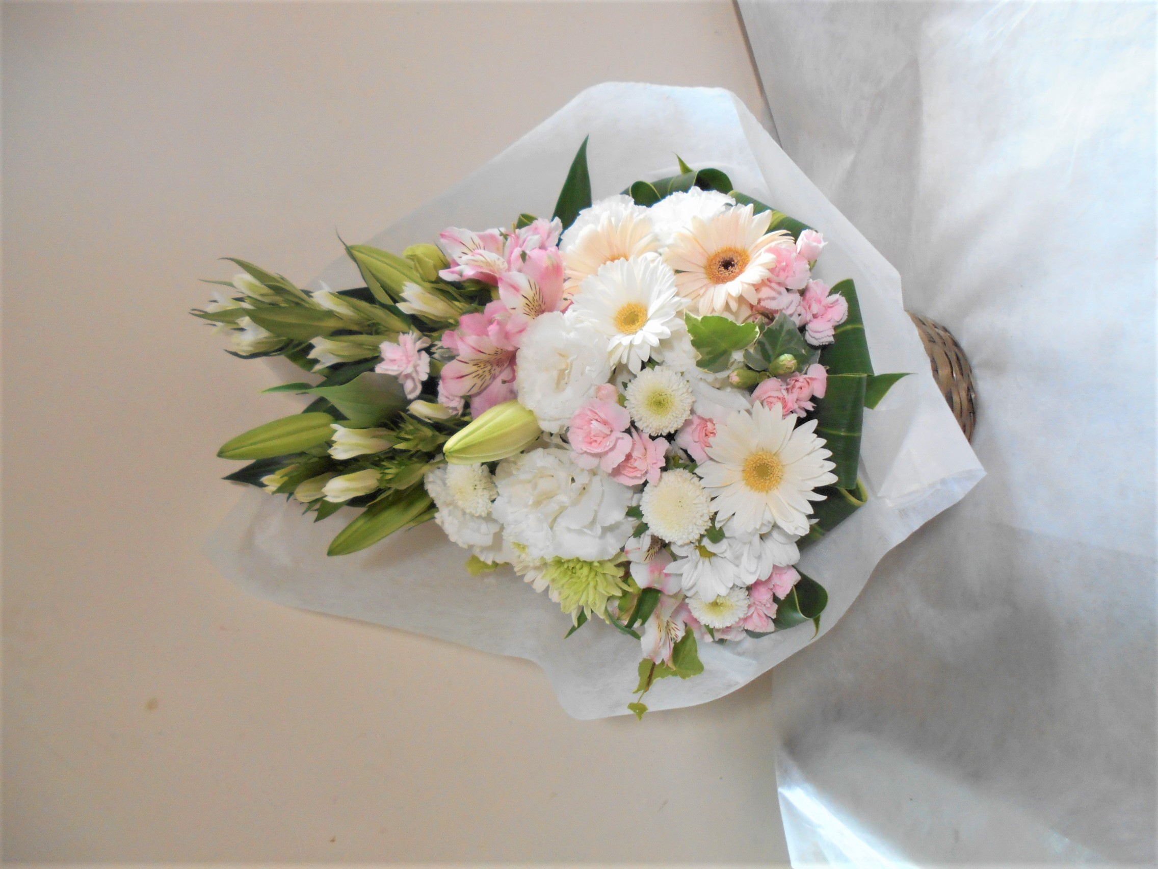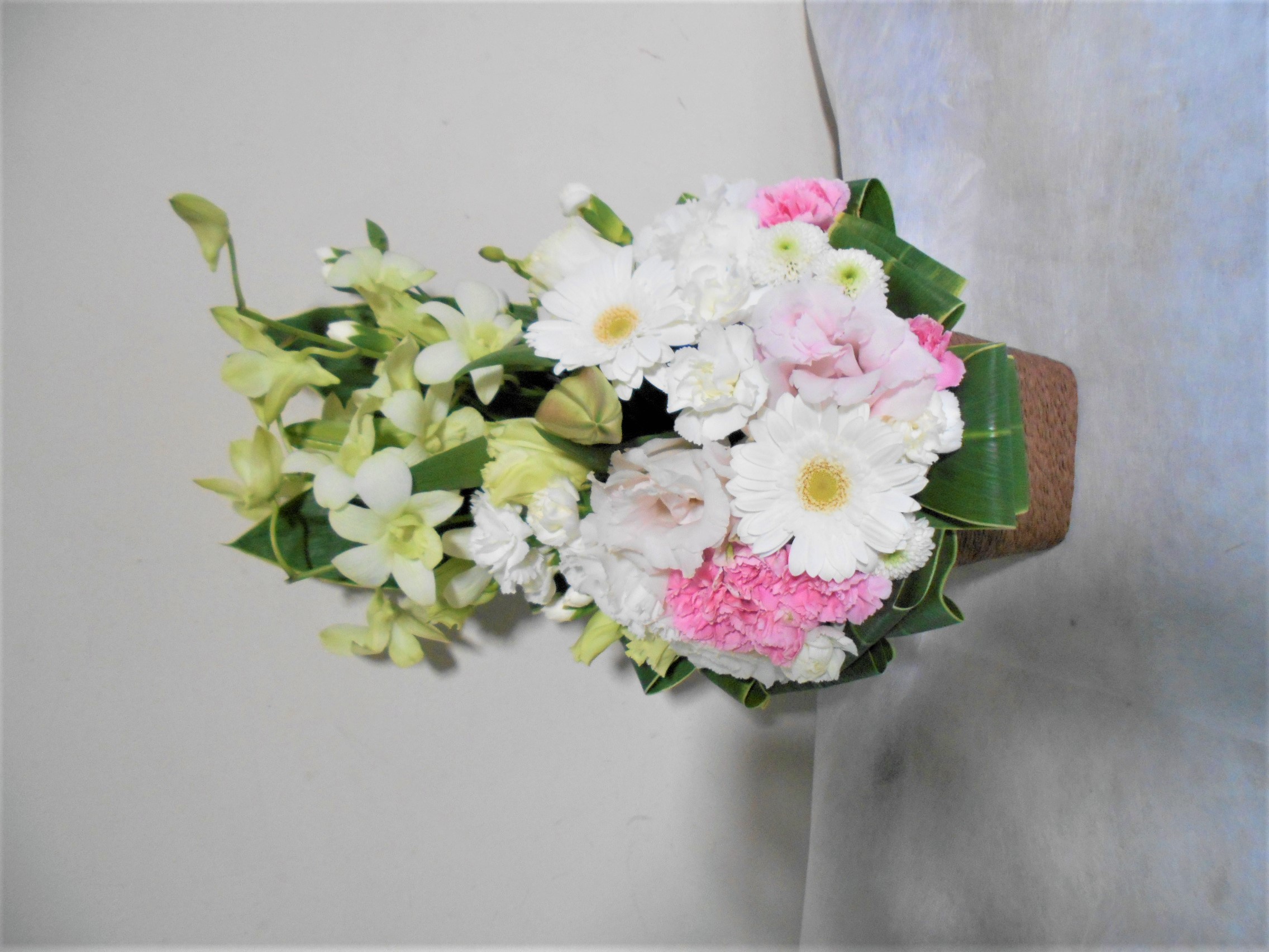 お悔やみ お供えの花 供花 (ホワイト&ピンクでまとめたバスケットアレンジ)