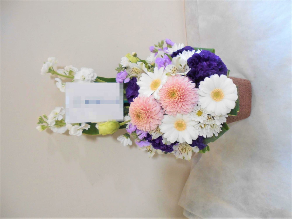 この写真は、実際にお届けさせていただいたアレンジメントです