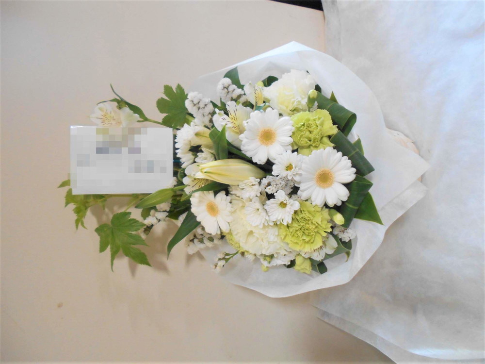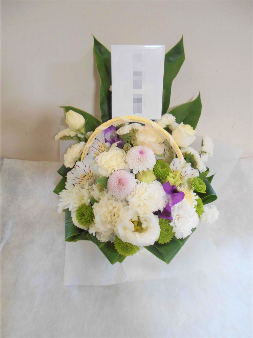 お悔やみ お供えの花 供花 (ホワイト&グリーンでまとめたバスケットアレンジ)
