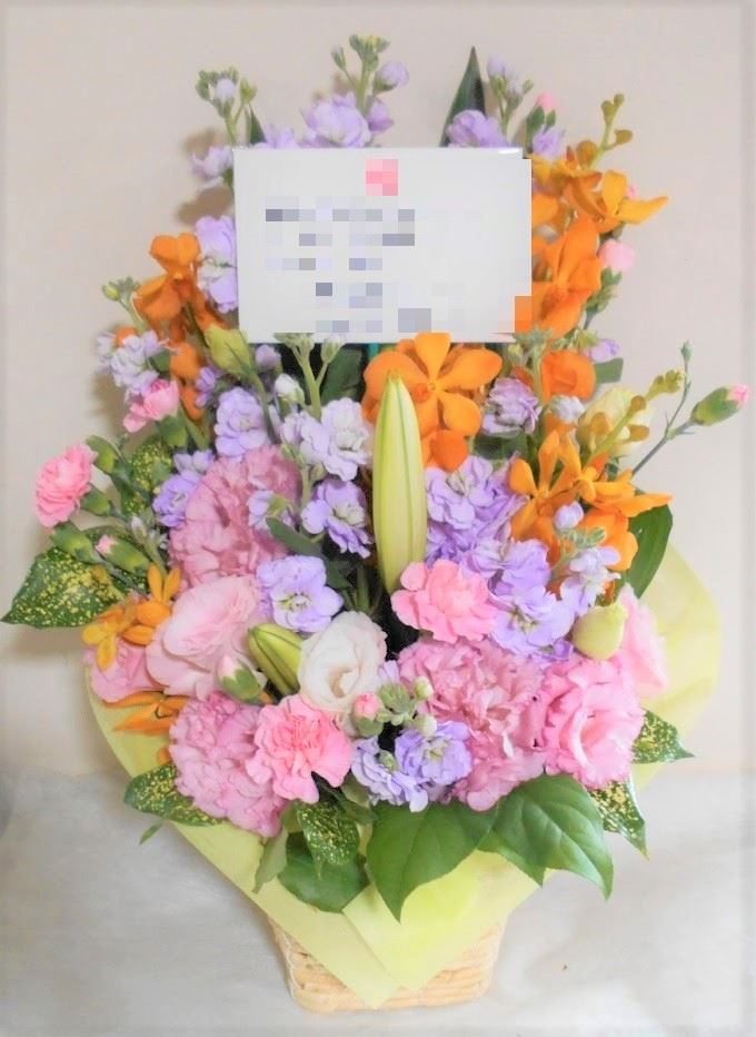 この写真は、実際にお届けさせていただいたアレンジメントです