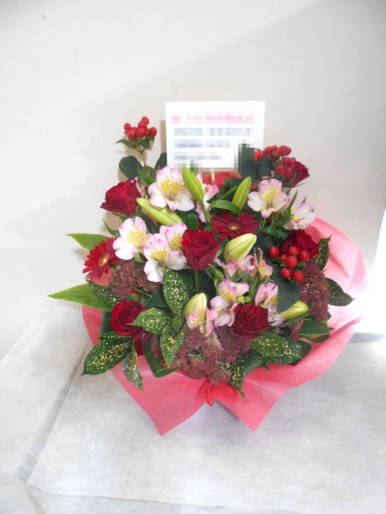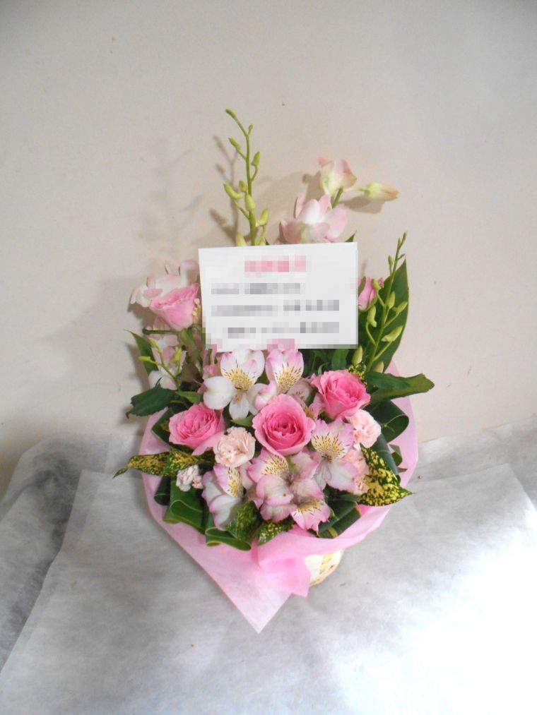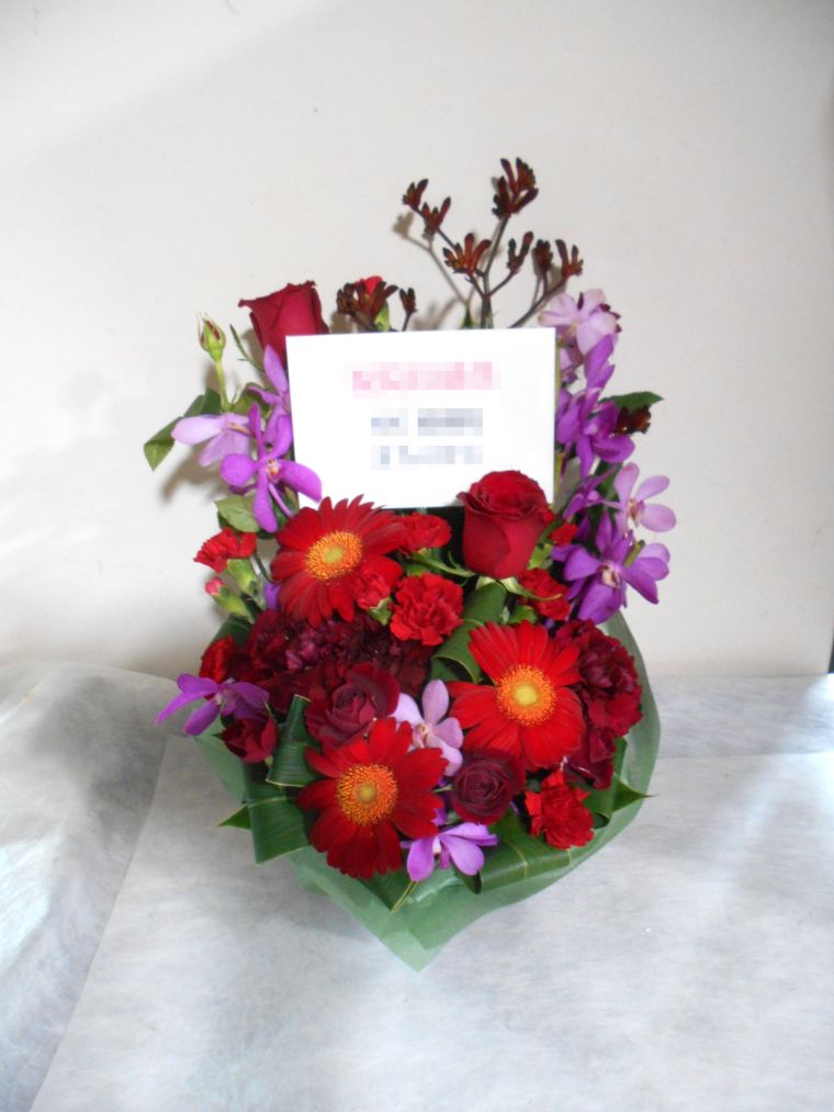 アレンジメントの実際にお届けした写真です。花秘書では発送前に写真をメールで送信致しますので安心して大切な顧客や取引様へのギフトにご利用頂けます。