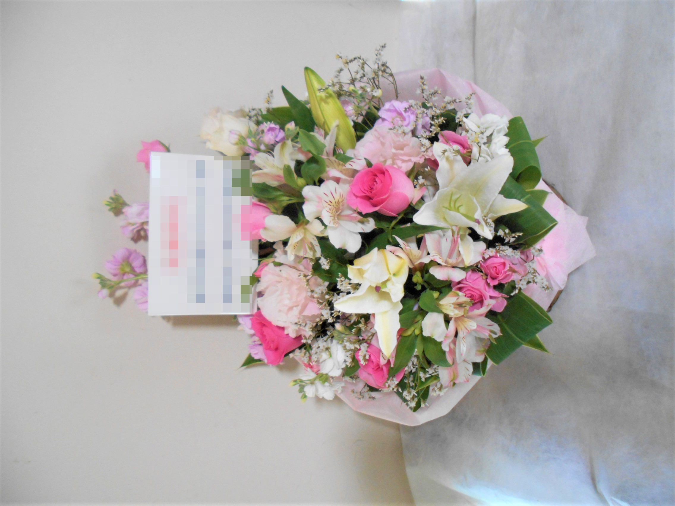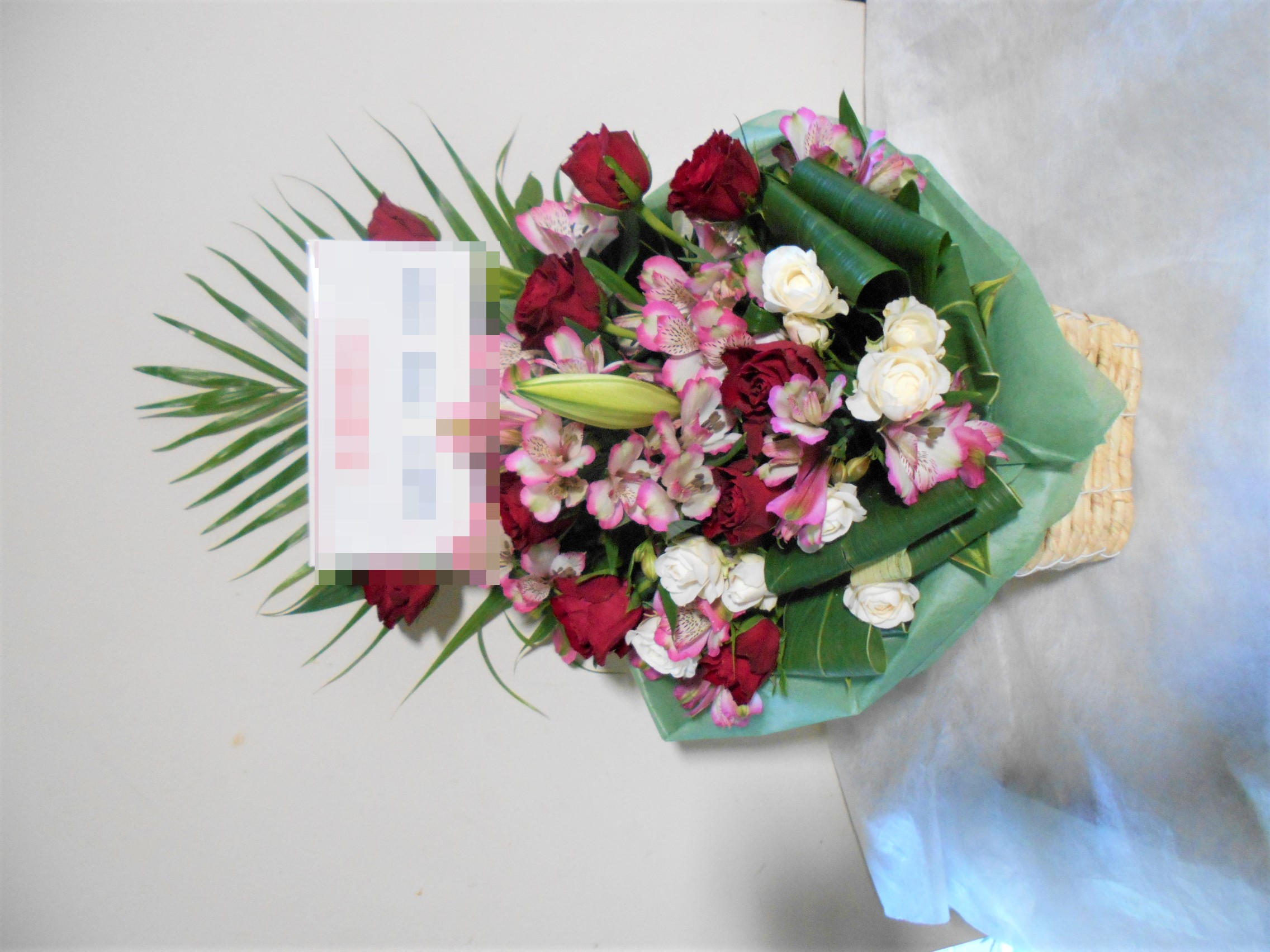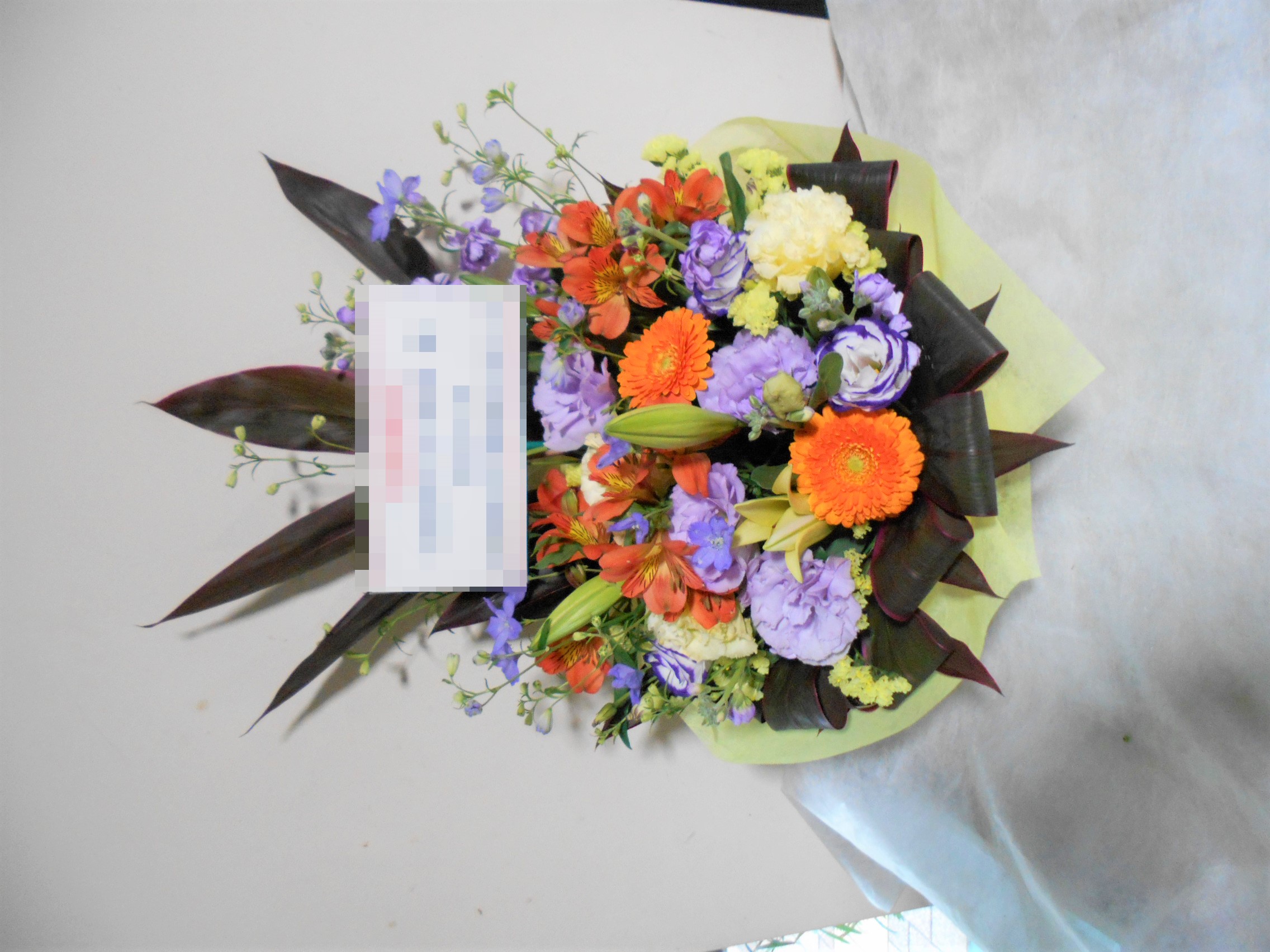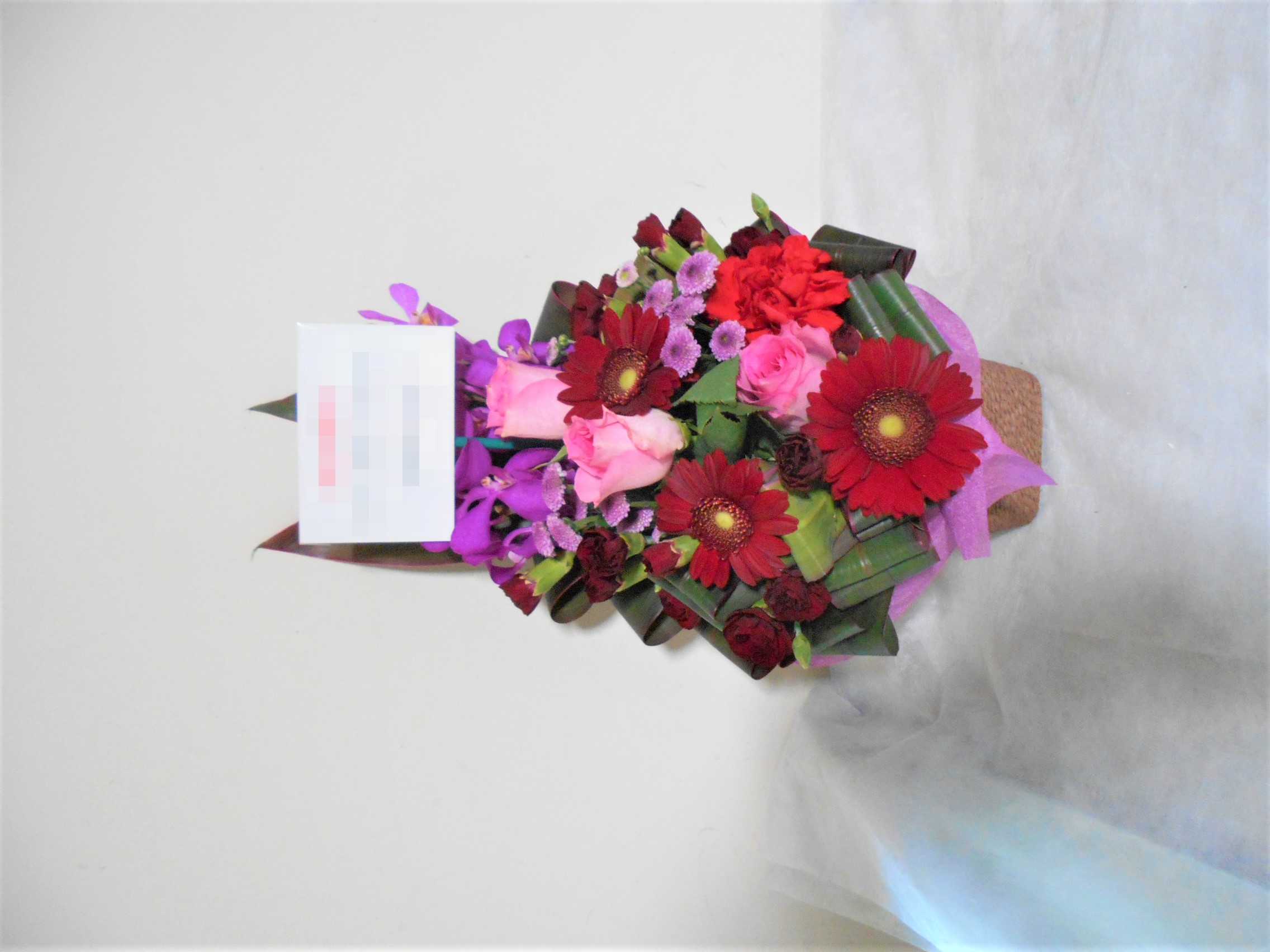 この写真は、実際にお届けさせていただいたアレンジメントです