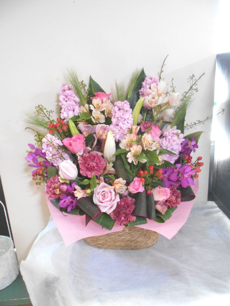 この写真は、実際にお届けさせていただいたアレンジメントです