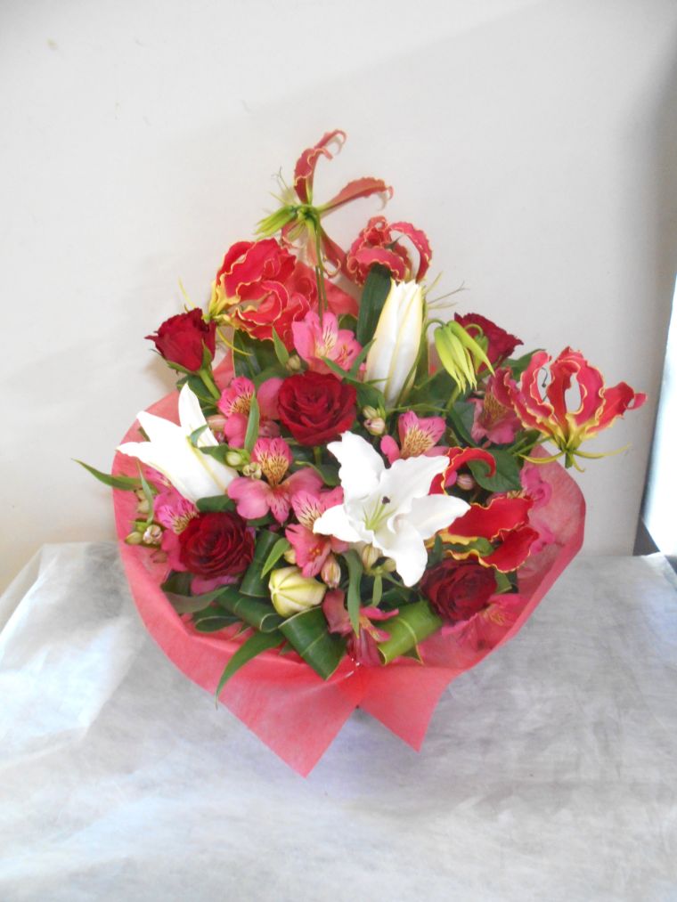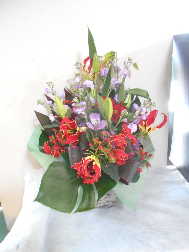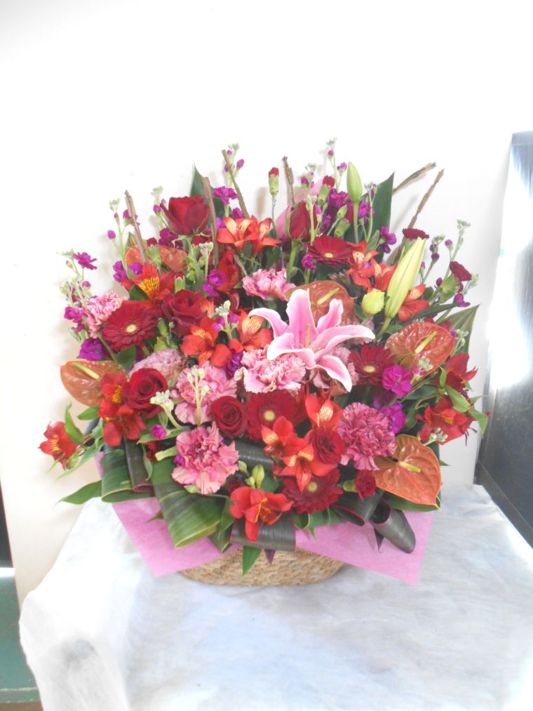 華寿・還暦(60歳)のお祝い赤色のお花メインのアレンジメント10000