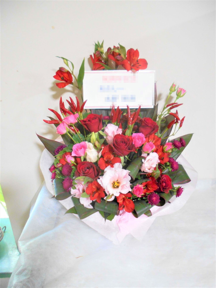 この写真は、実際にお届けさせていただいたアレンジメントです