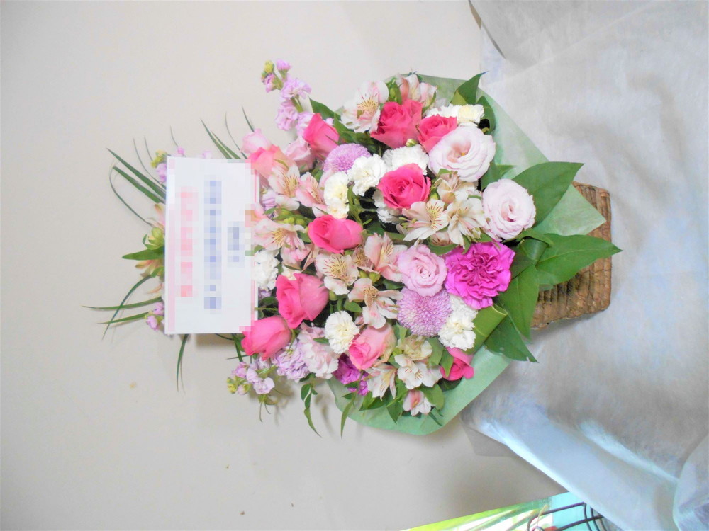 アレンジメントの実際にお届けした写真です。花秘書では発送前に写真をメールで送信致しますので安心して大切な顧客や取引様へのギフトにご利用頂けます。