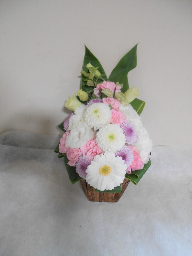 お悔やみ お供えの花 供花 (淡いピンク系のお花でまとめたバスケットアレンジ)