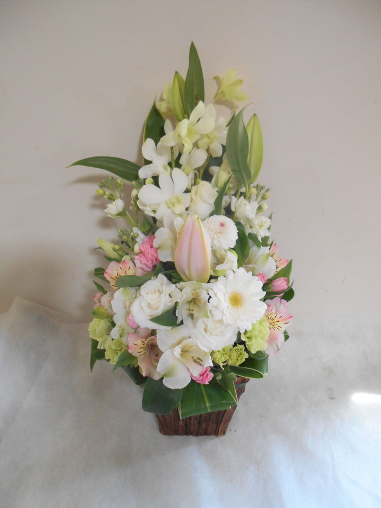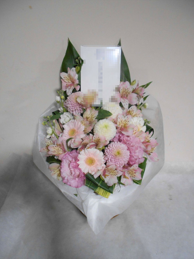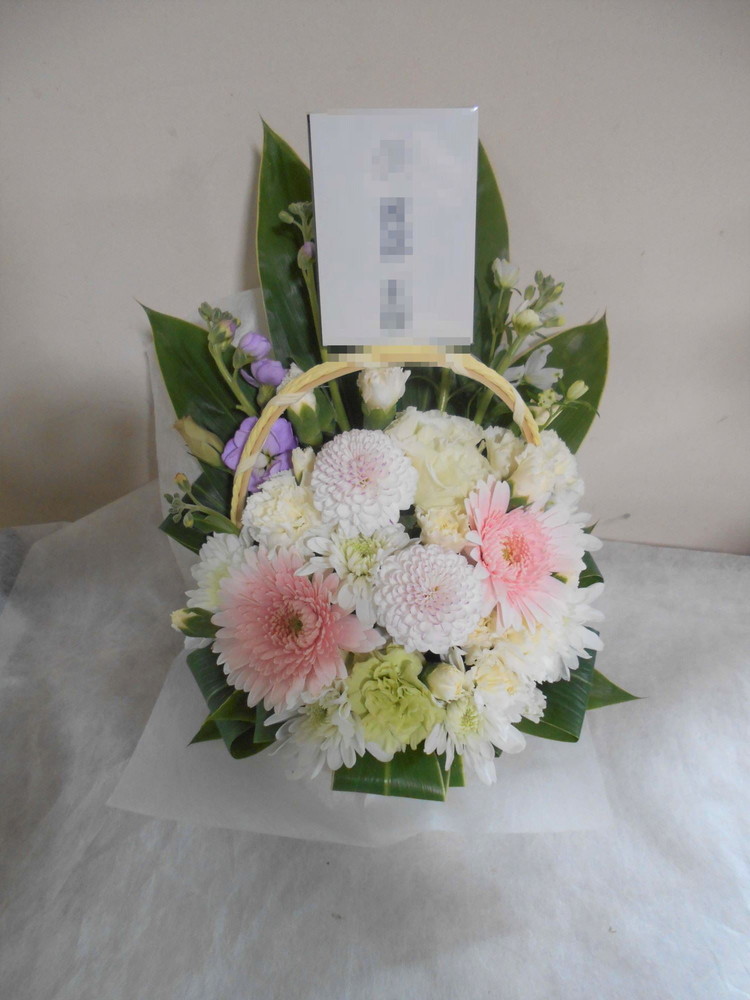 お悔やみ お供えの花 供花 (淡いピンク系のお花でまとめたバスケットアレンジ)