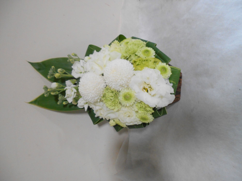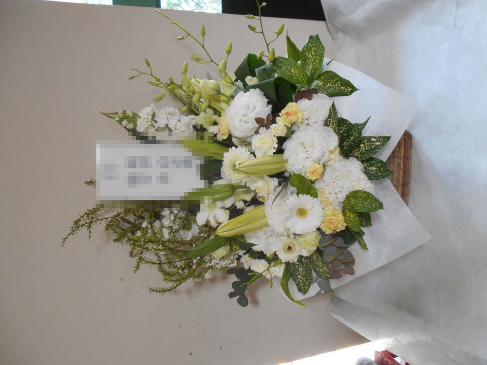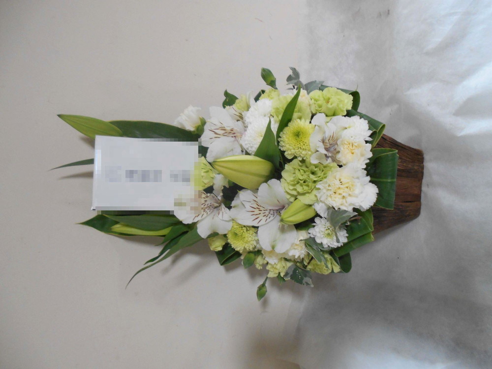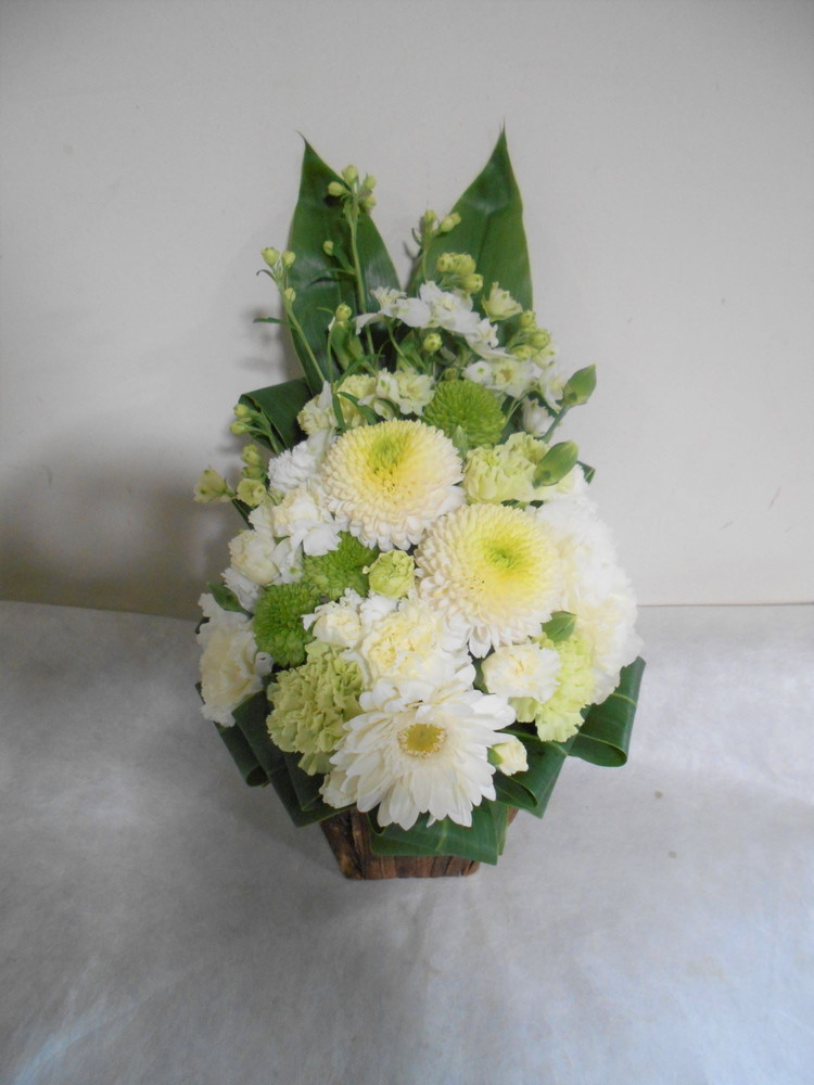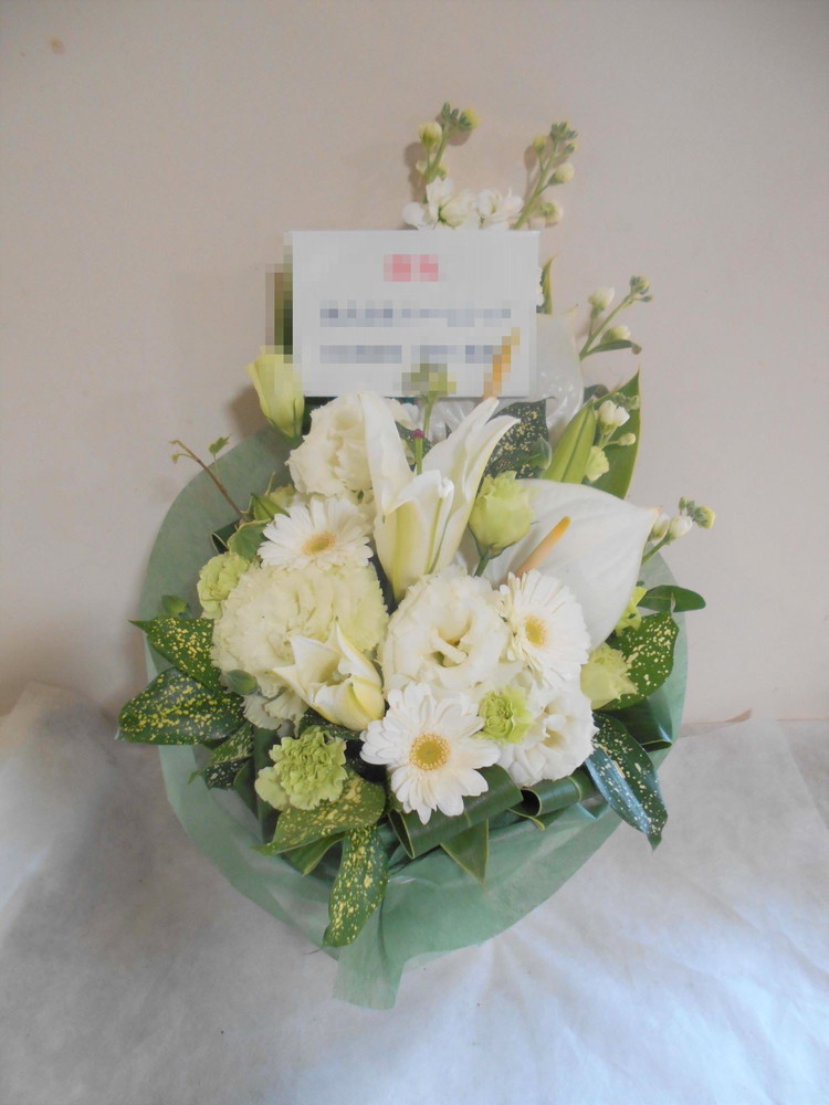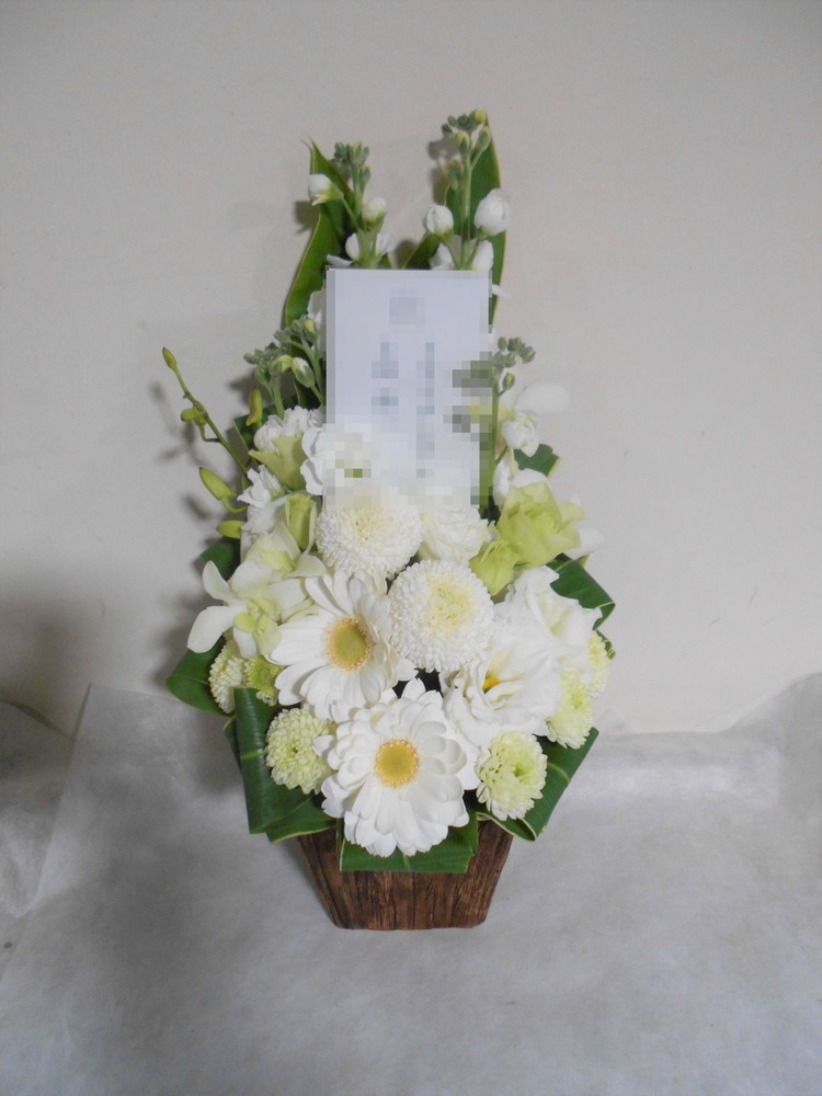 お悔やみ お供えの花 供花 (ホワイト&グリーンでまとめたバスケットアレンジ)