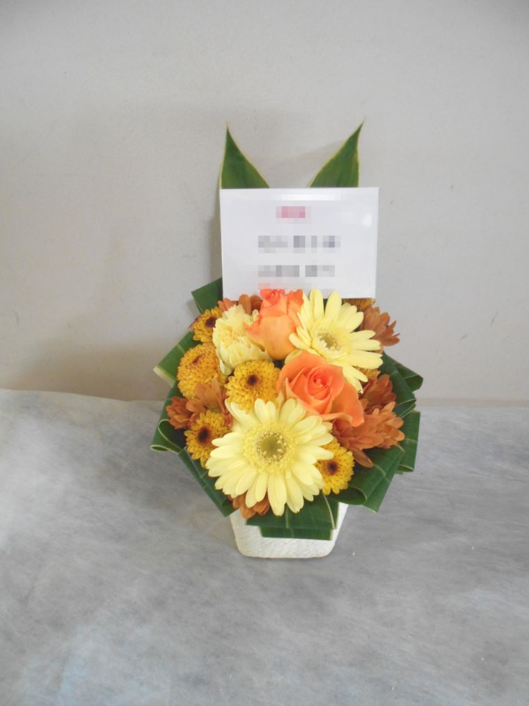 アレンジメントの実際にお届けした写真です。花秘書では発送前に写真をメールで送信致しますので安心して大切な顧客や取引様へのギフトにご利用頂けます。