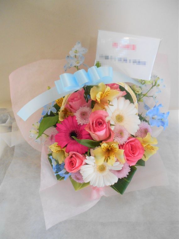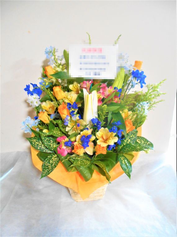 この写真は、実際にお届けさせていただいたアレンジメントです