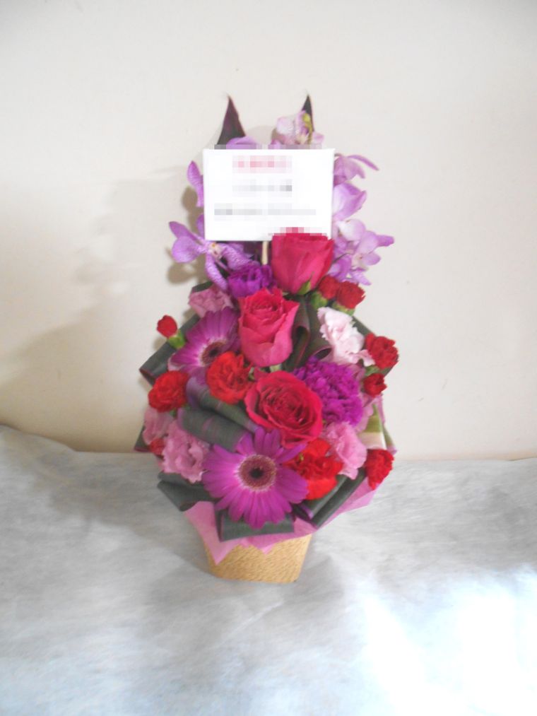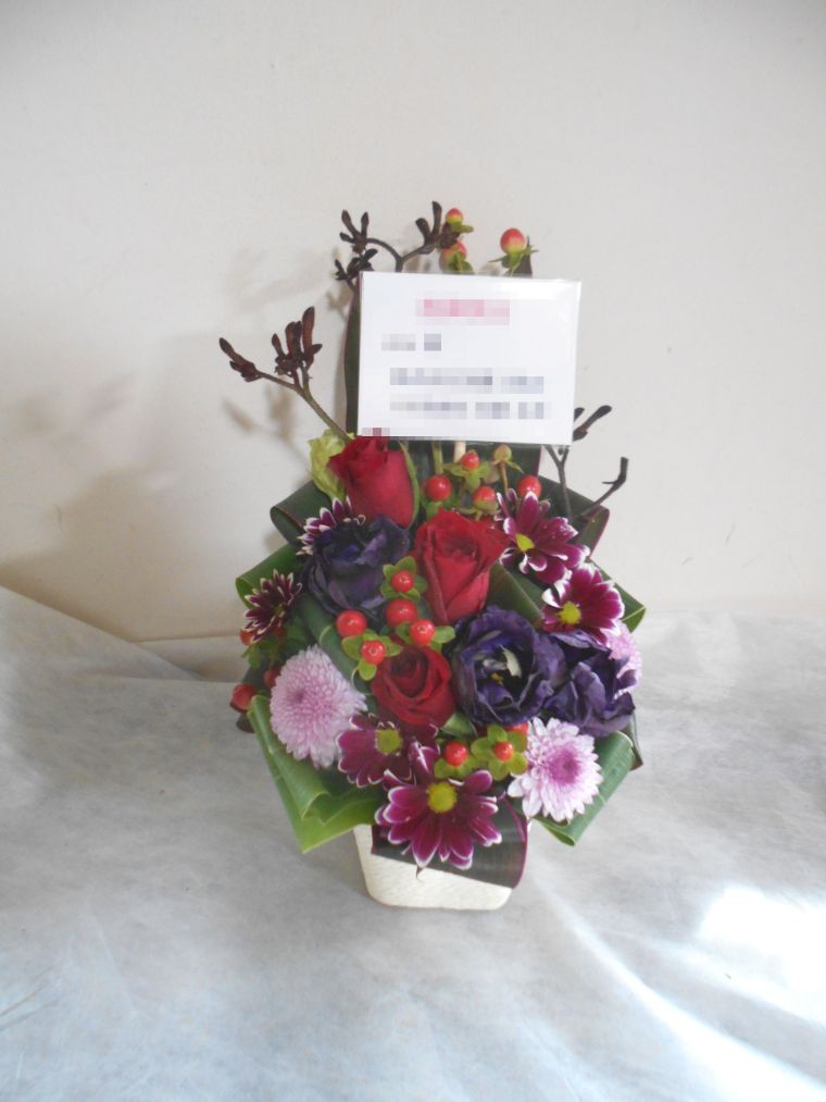 アレンジメントの実際にお届けした写真です。花秘書では発送前に写真をメールで送信致しますので安心して大切な顧客や取引様へのギフトにご利用頂けます。