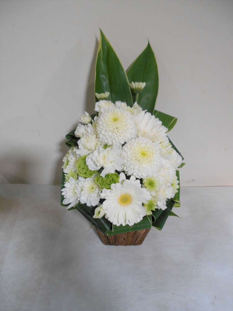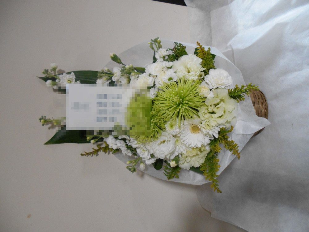 お悔やみ お供えの花 供花 (ホワイト&グリーンでまとめたバスケットアレンジ)
