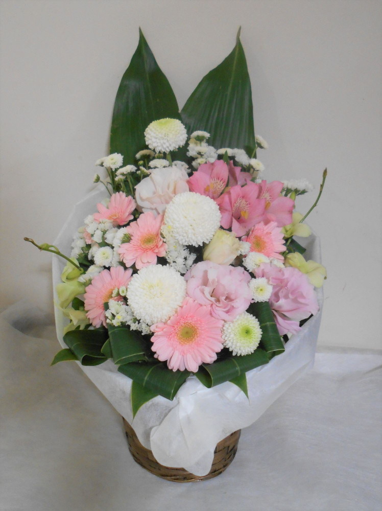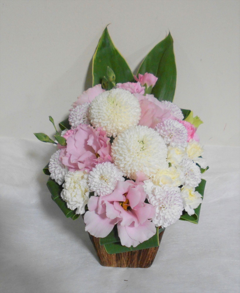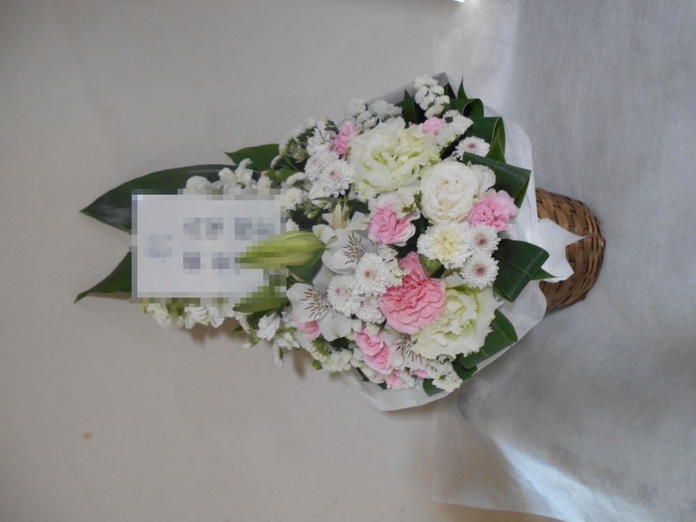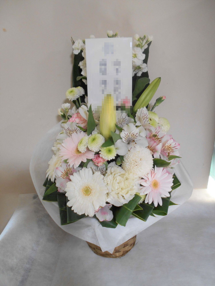 お悔やみ お供えの花 供花 (ホワイト&ピンクでまとめたバスケットアレンジ)