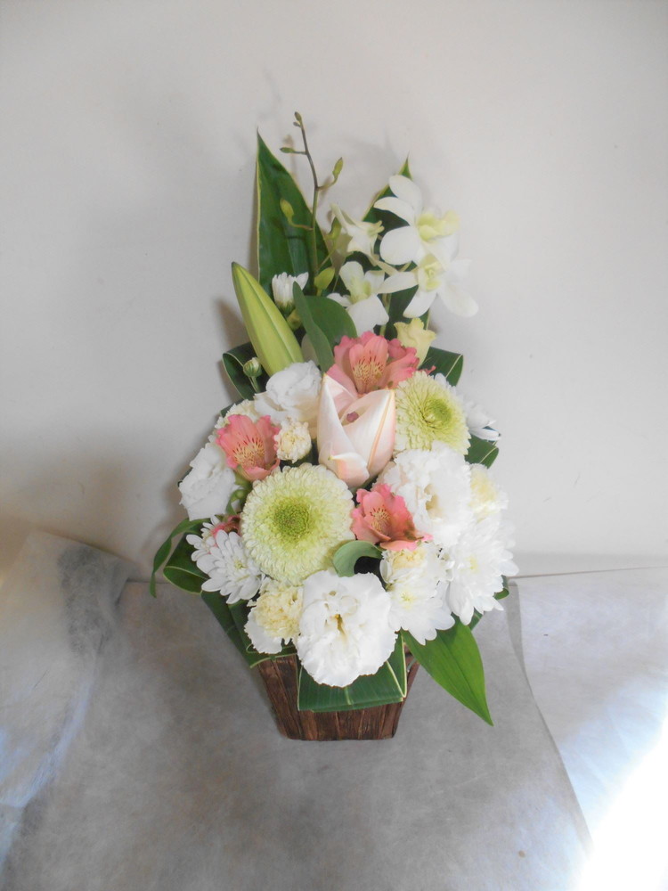 この写真は、実際にお届けさせていただいたアレンジメントです
