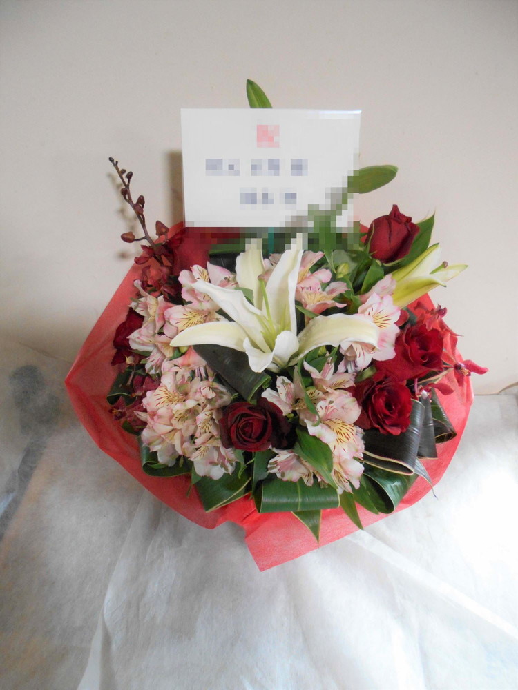 華寿・還暦(60歳)のお祝い赤色のお花メインのアレンジメント10000