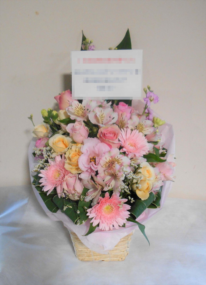 アレンジメントの実際にお届けした写真です。花秘書では発送前に写真をメールで送信致しますので安心して大切な顧客や取引様へのギフトにご利用頂けます。